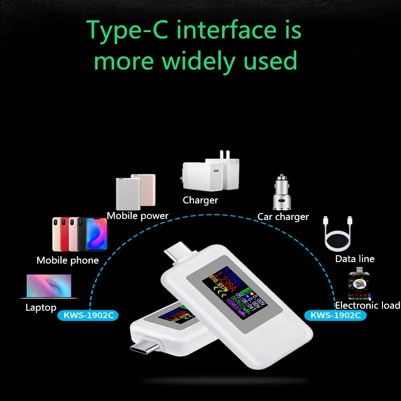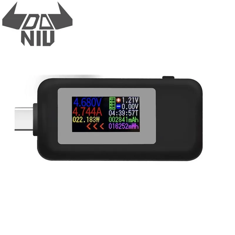 Тестер с цветным дисплеем DANIU Type-C, USB-тестер 0-5 А, ток 4-30 в, напряжение USB, зарядное устройство, измеритель мощности, детектор аккумуляторов для мобильных телефонов