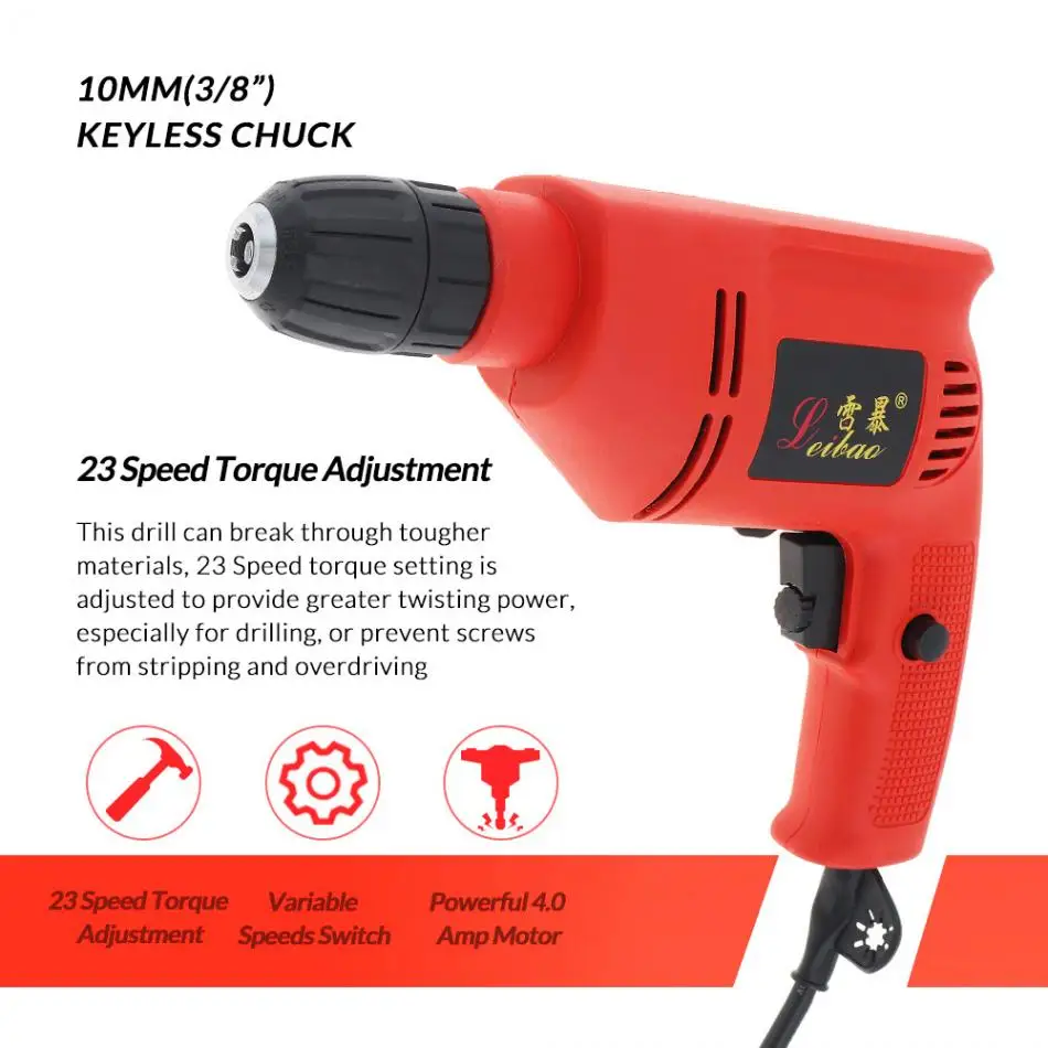Ручной электродрель 220 В, 420 Вт, с переключателем регулировки вращения и патроном 10 мм для дрели для домашнего обслуживания