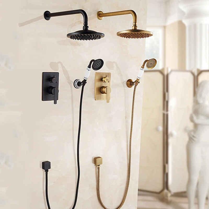 Настенный смеситель Водопад для ванной комнаты, скрытый античный кран, черная Душевая система, кран для ванны