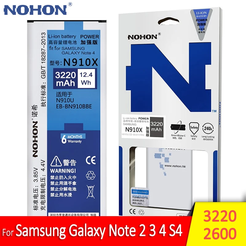 Оригинальный NOHON батарея для Samsung Galaxy Note 2 3 4 S4 Note2 N7100 Note3 NFC N9000 Note4 N9100 N910X; По-настоящему высокое ёмкость Bateria