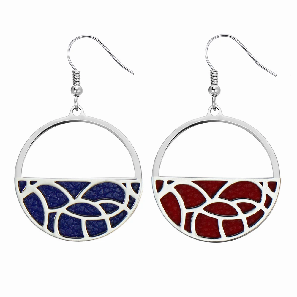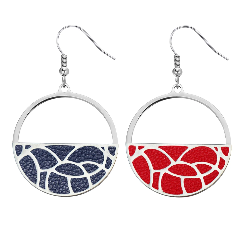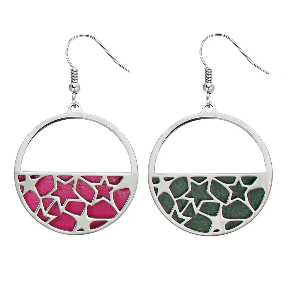 Женские серьги-подвески из нержавеющей стали, с кожаными вставками