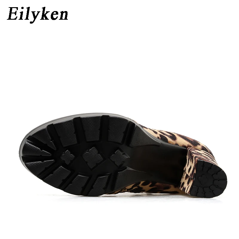 EilyKenкоричневые ботильоны ручной работы на высоком квадратном не сужающемся книзу массивном каблуке с леопардовым принтом; Ботильоны на платформе с боковой молнией; Модельные женские ботинки