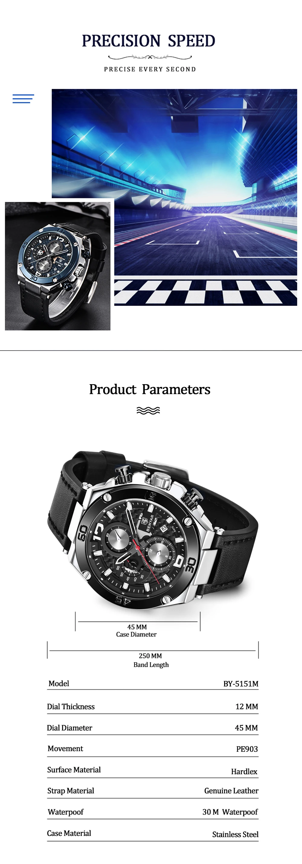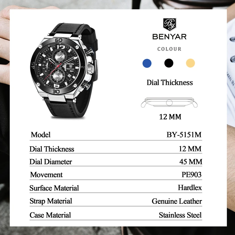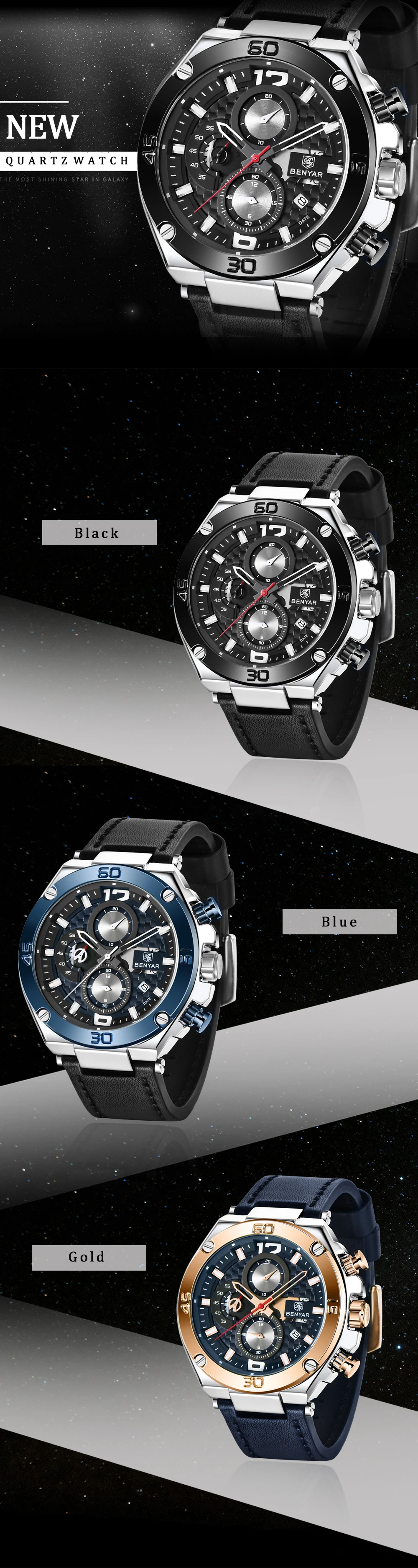 В: выцветают ли часы?О: наши часы не выцветают.В: светятся ли часы?О: Да. Когда указатель поглощает светильник, он будет сиять.В: работает ли хронограф?О: Да, все три хронографа работают.В: Что делать, если есть проблема?О: пожалуйста, свяжитесь с нами, и мы предоставим решение Ключевые особенности:-100% новый с биркой и высоким качеством;Топ бренд класса люкс Высокое качество дизайн циферблат, функция отображения даты;Механизм: кварцевый механизм с временным модулем (Сделано в Японии)-3 АТМ/30 М Водонепроницаемость (поддерживает холодный душ и плавание, не работает с часами под водой, не поддерживает горячую воду); Посылка включает в себя:-100% новый бренд-Часы BENYAR-1 шт.-1 x оригинальные подарочные коробки-1 салфетка для протирания-1 Подарочный браслет