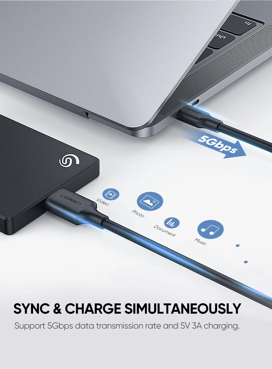 Кабель USB-CMicro 3.0 В Ugreen, для передачи и синхронизации данных, для MacBook, жесткого диска HDD, SSD