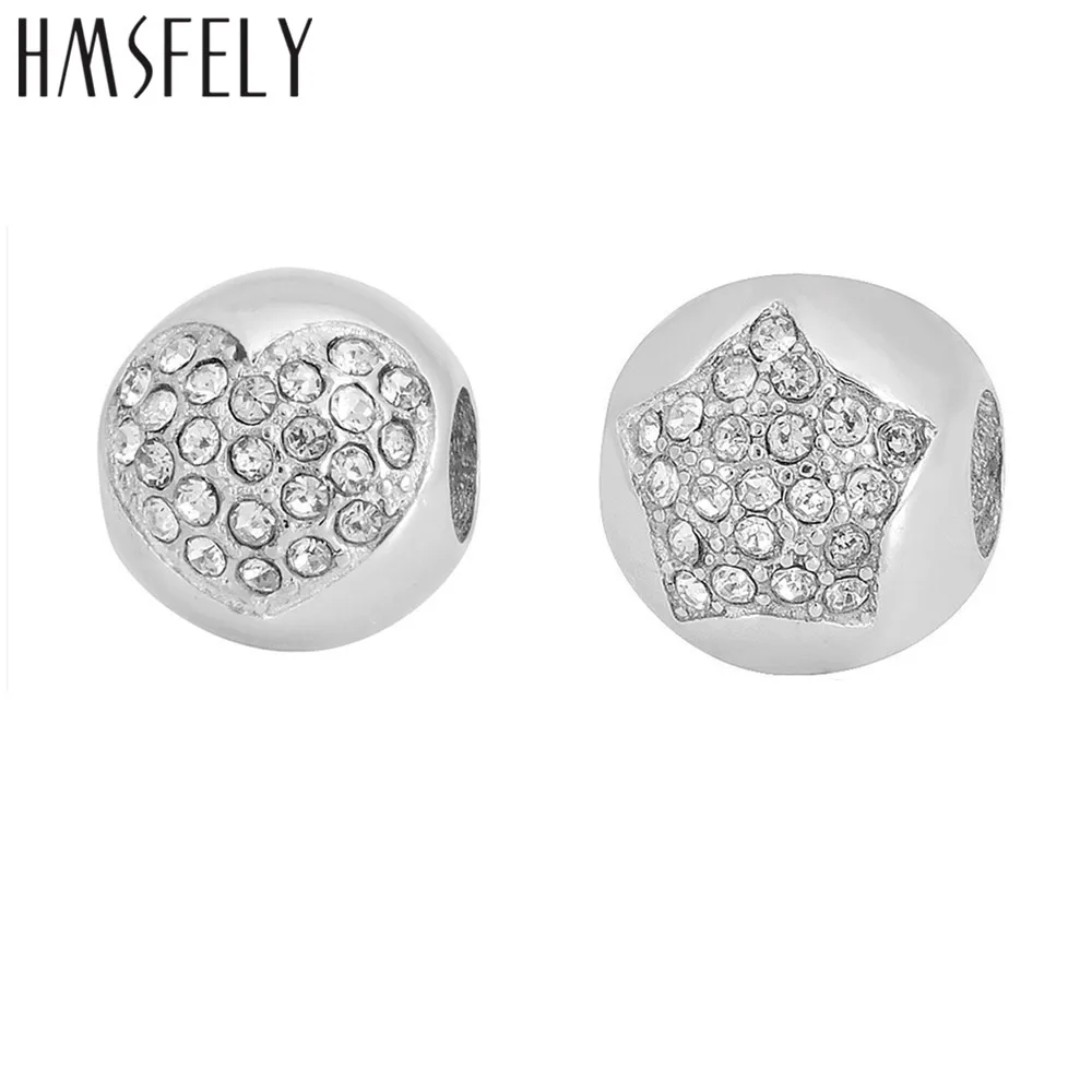 HMSFELY, бусины-шармы из нержавеющей стали 316L с кристаллами, бисер в форме сердца, пентаграмма для самодельного браслета, ожерелья, ювелирных изделий, аксессуары из бисера
