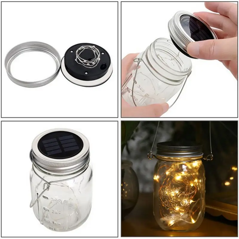 Водонепроницаемые рождественские украшения гирлянды 2 м 20 светодиодный свет на солнечных батареях для крышки для банок вставить Цвет Изменение сада