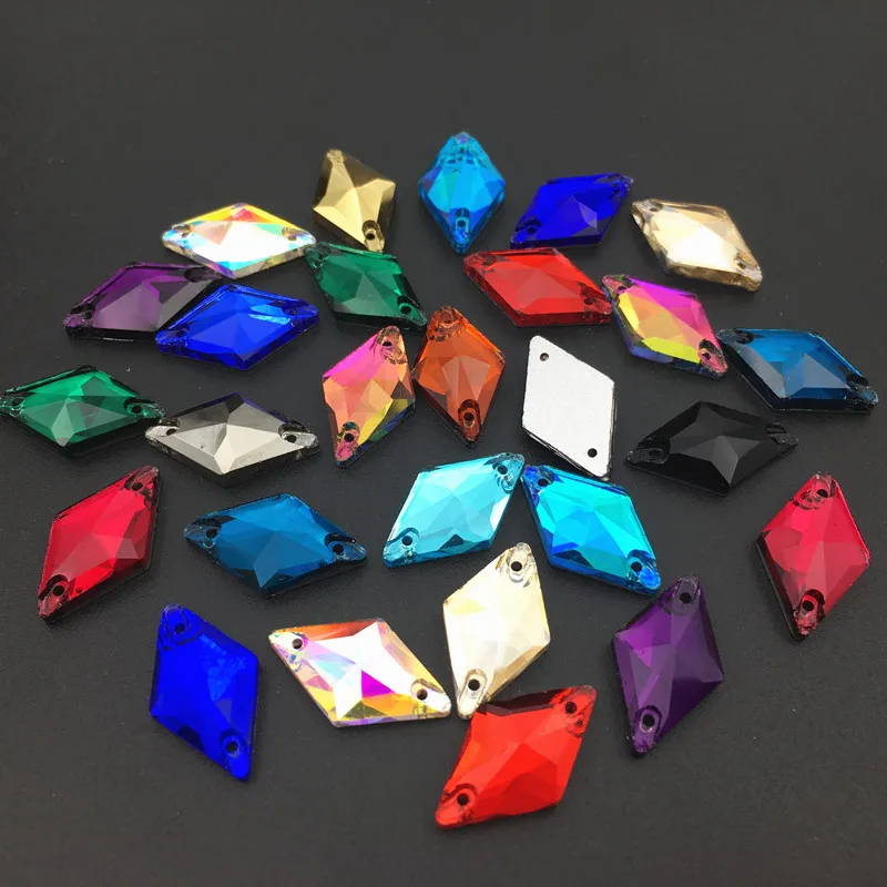 20 шт., ромбы 11x19 мм, разные цвета, пришивные стразы плоские стеклянные кристаллы, для шитья платья со стразами