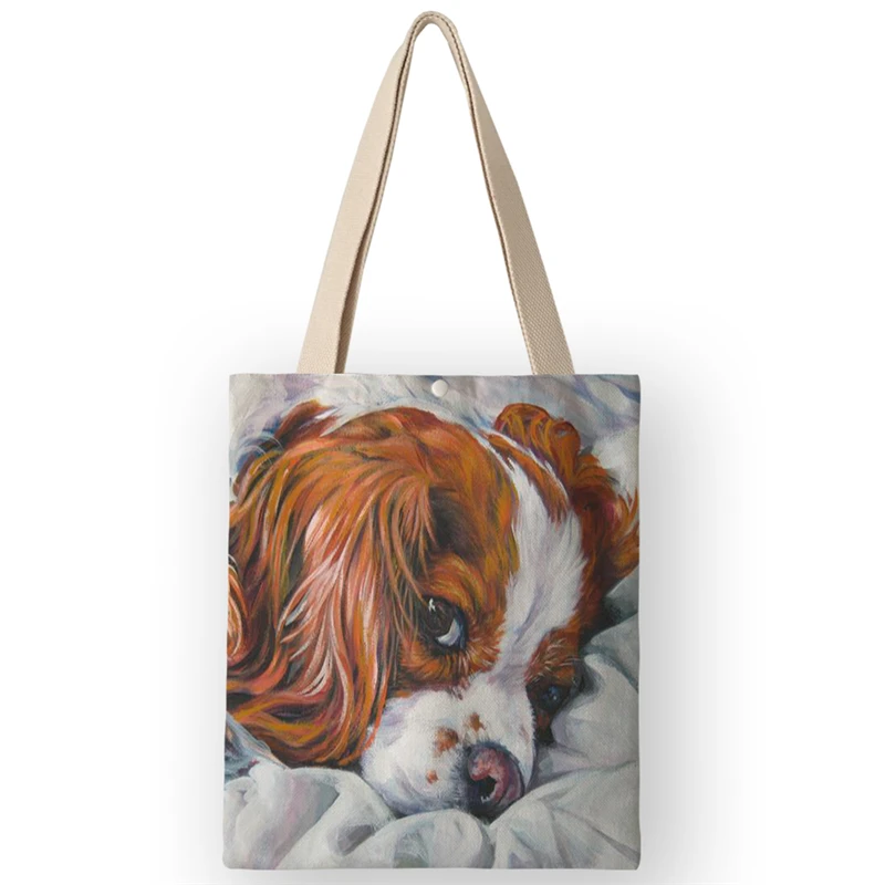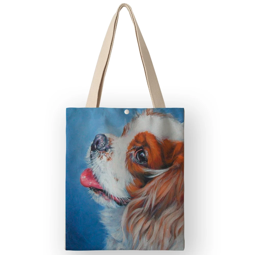 Холщовые сумки Tote для женщин 2020 Новый Чарльз спаниель картина маслом печать сумки Shouldr Shopper сумка для школы путешествия AKB01048 Наименование товара: Сумка-тоутМатериал: хлопок и ленРазмер: 35 × 40 см/13,8 × 15,7 дюймаСтруктура: внутренний карман для телефона/ключа, застежкаУпаковочный лист: 1 * сумка-тоут