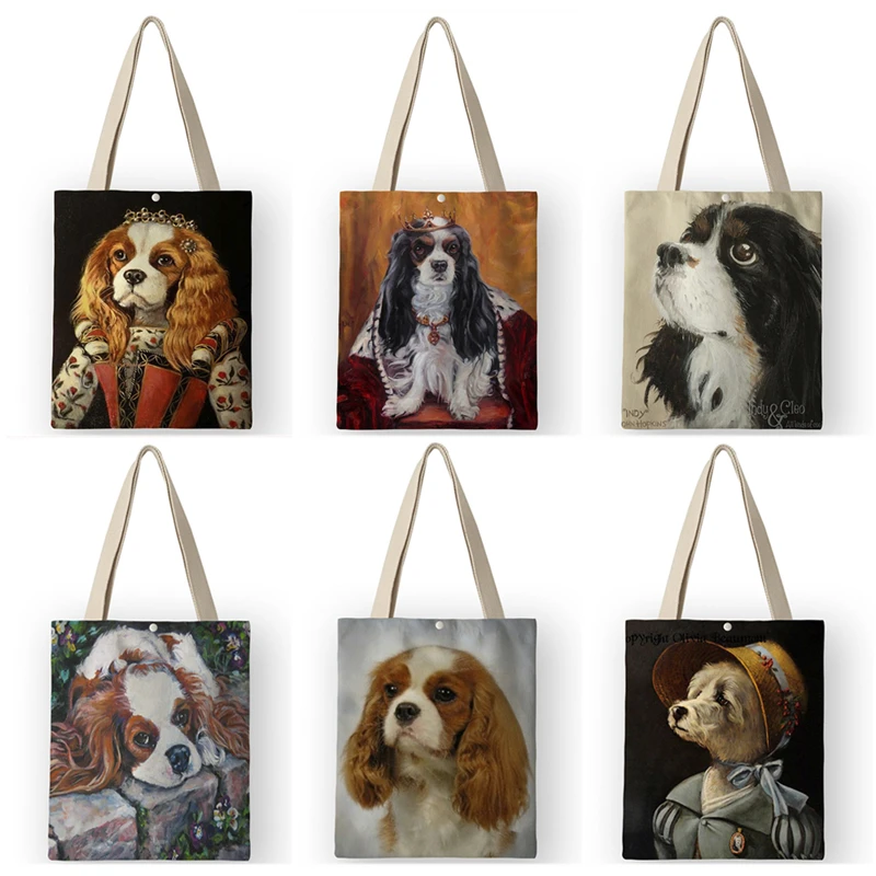 Холщовые сумки-тоуты для женщин, новинка 2020, сумки с принтом картины маслом Charles Spaniel, шоппер-сумка для школы и путешествий AKB01048