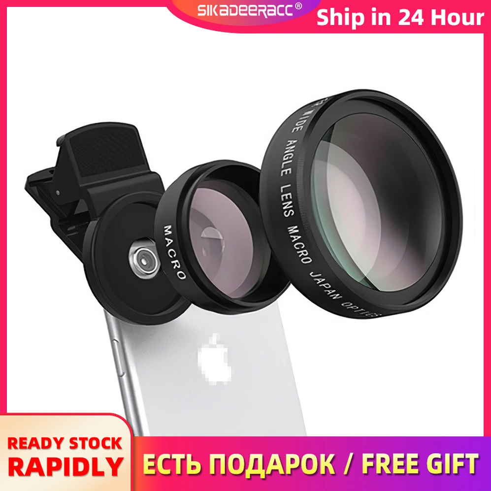 Мобильный телефон 2-в-1 с супер широкоугольным объективом 0,45x и 12,5x, макро-мобильный телефон с объективом без искажений, HD-объектив для камеры, для кемпинга и активного отдыха