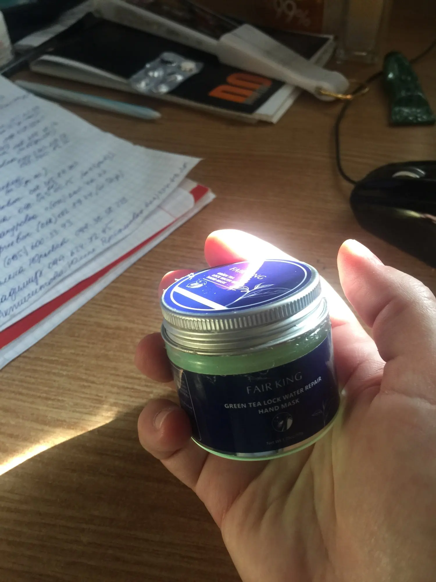 Заказала маску две недели назад и сегодня уже получила ее во всей красе!Упаковано хорошо, баночка маленькая ( как было описано в отзывах), это не страшно!Запах отличный, распределяется по поверхности рук великолепно и экономично, только снимается эта маска пленка не чулком, а маленькими кусочками!Проще смыть под водой!