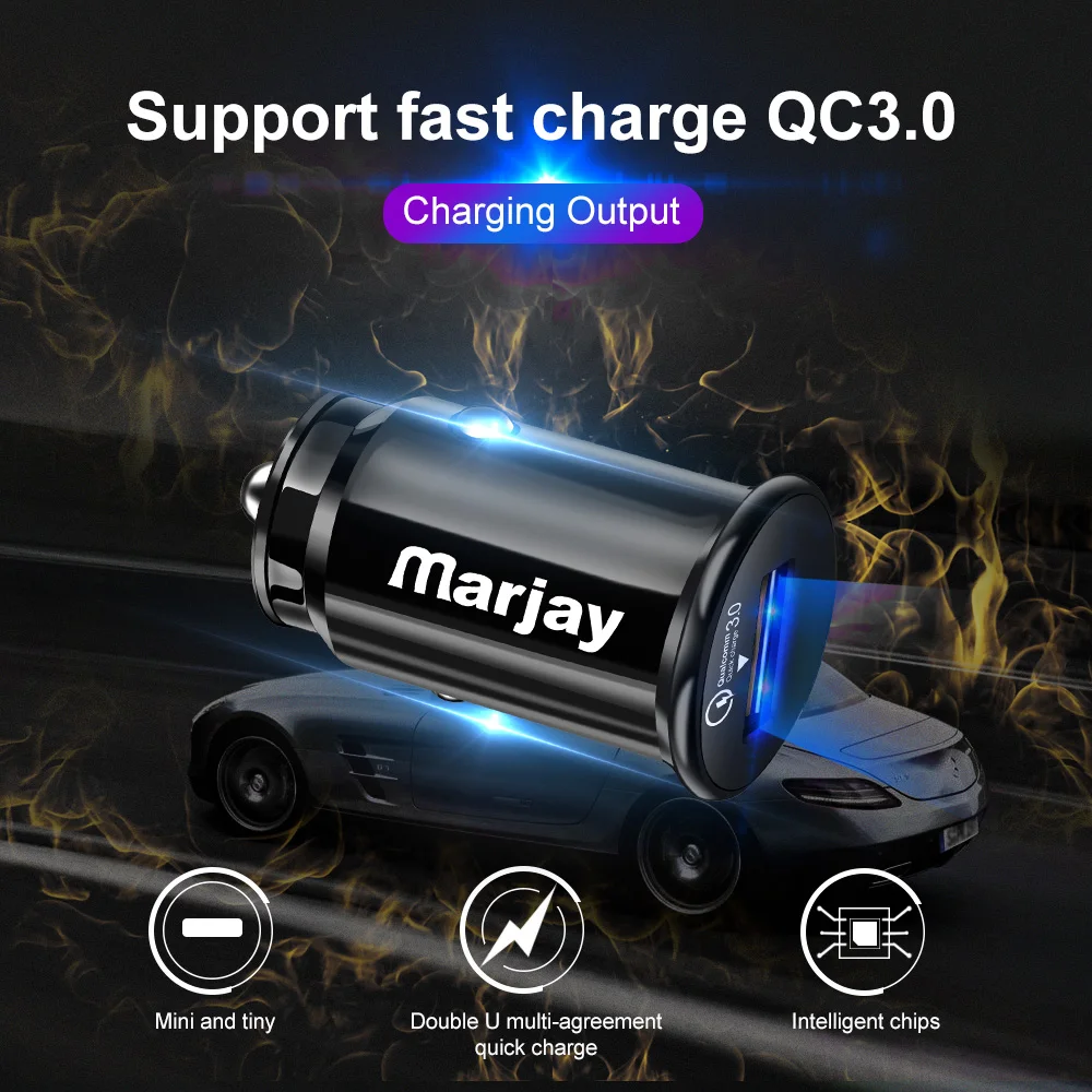 Автомобильное зарядное устройство Marjay 3,0 А, быстрая зарядка, быстрое зарядное устройство USB для iphone, Samsung, Xiaomi, Huawei, автомобильное зарядное устройство QC3.0
