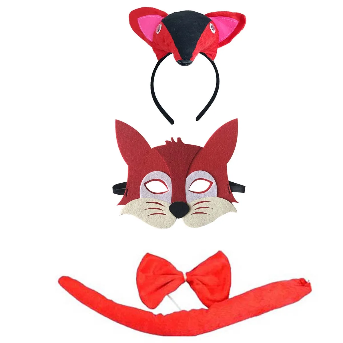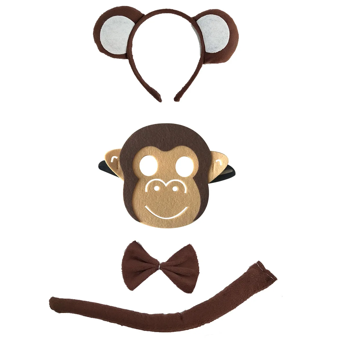 Детские маски с животными джунглей, повязка на голову, хвост, галстук, бабочка, глаза, День Рождения вечерние плей, Хэллоуин, украшение для детского шоу