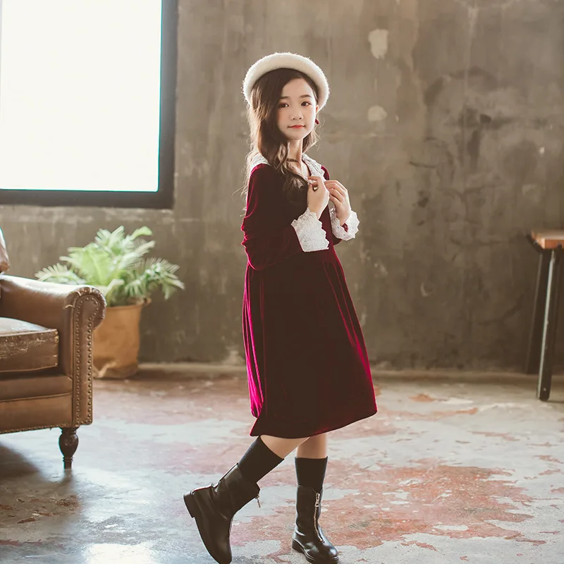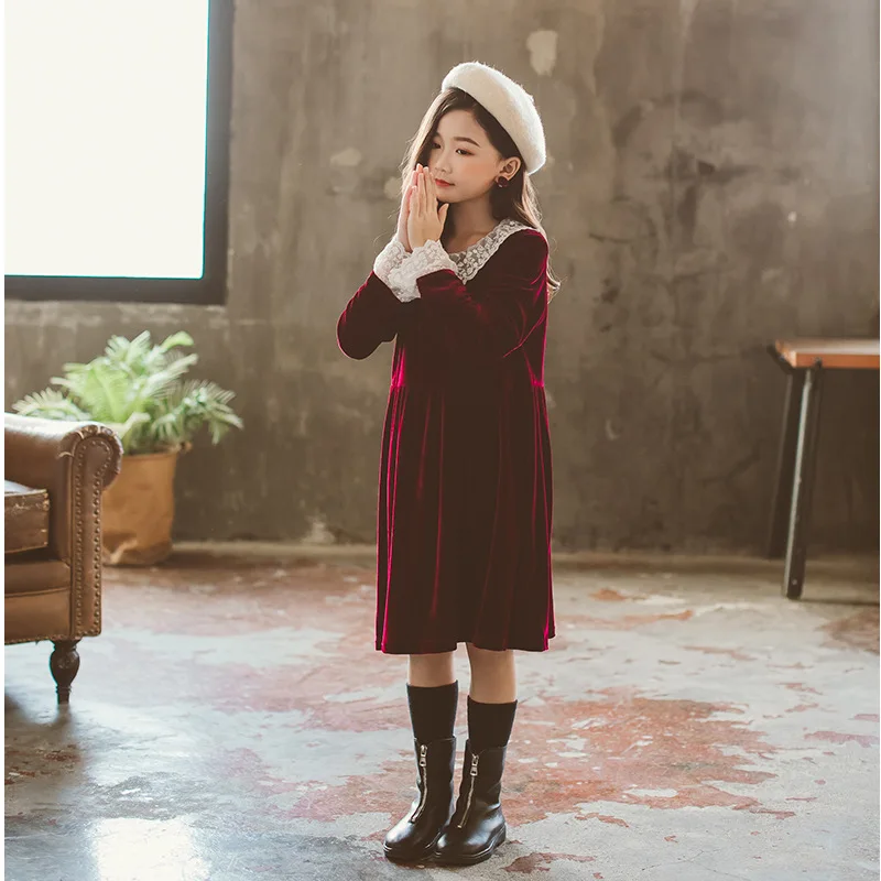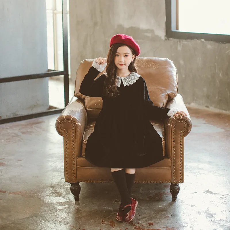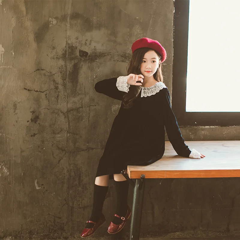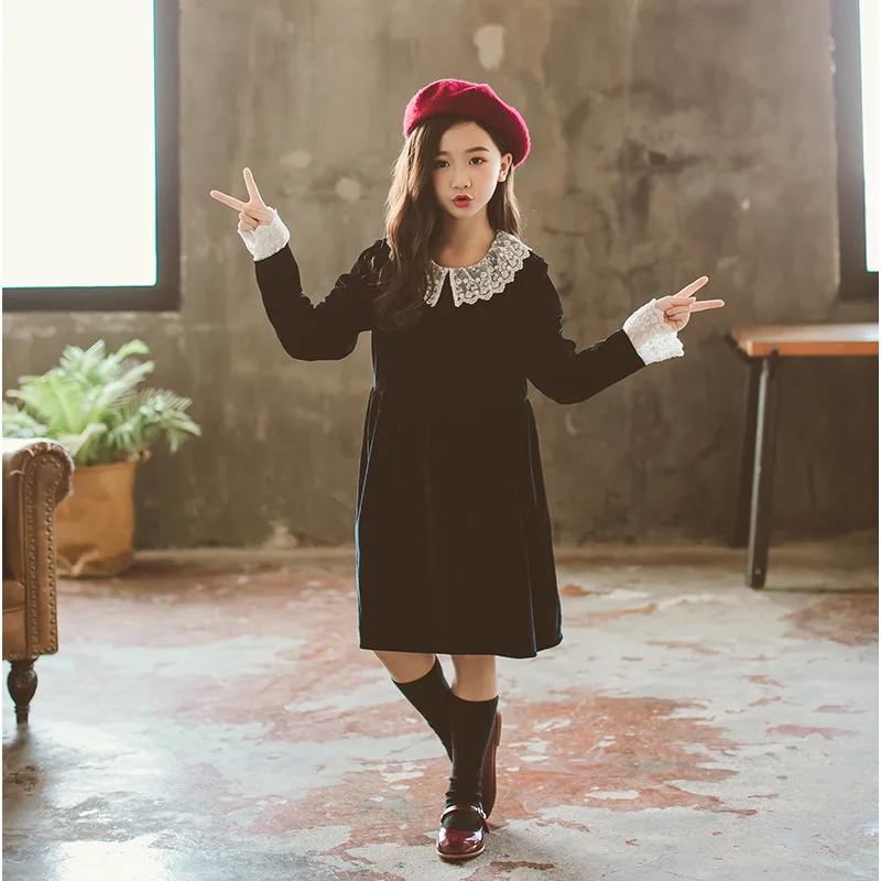 Платье детское демисезонное кружевное составного кроя с длинными рукавами