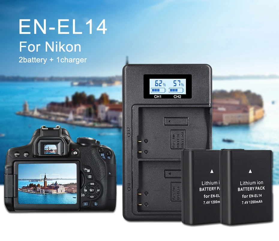 Palo 2 шт. EN-EL14 Камера Батарея + ЖК-дисплей Дисплей Зарядное уст...