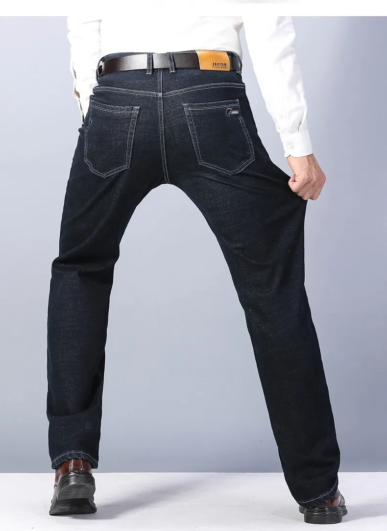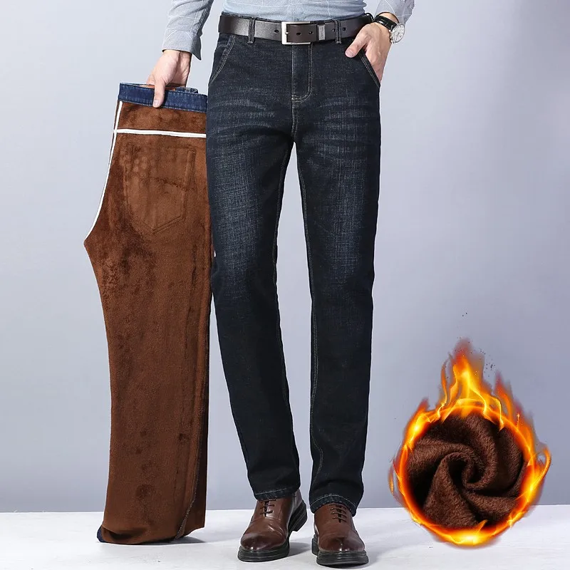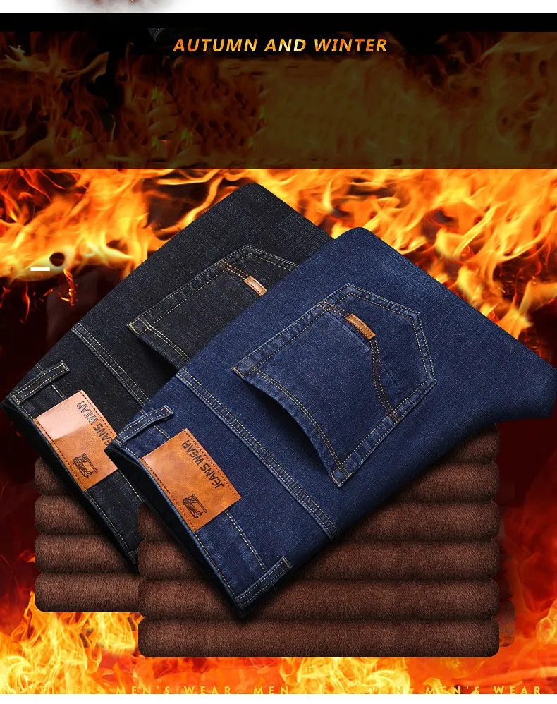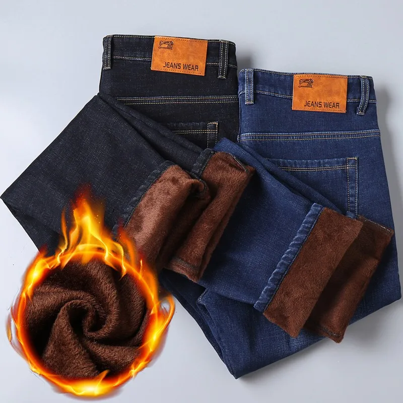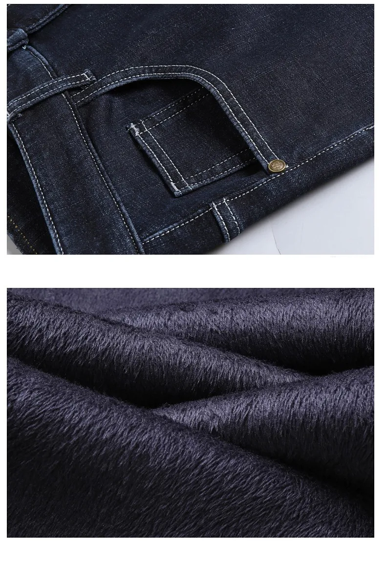 Зимние теплые фланелевые эластичные джинсы, мужские зимние качественные флисовые брюки, мужские прямые флокированные джинсы