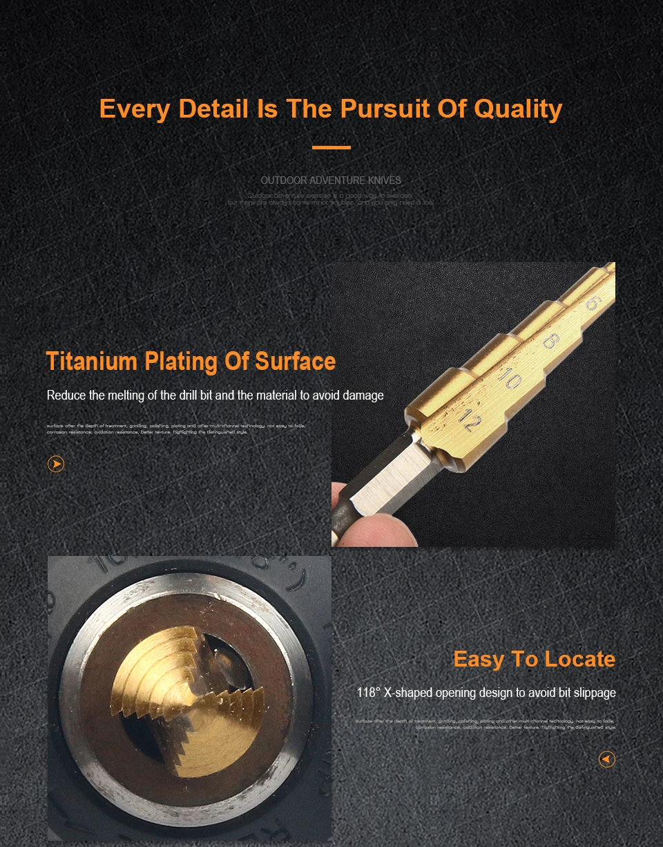 ❣Ступенчатое сверло, также известное как ступенчатое сверло или пагода, в основном для обработки древесины и стальные сверла. Основной материал Высокоскоростная сталь, титановые сверла высокого качества.
