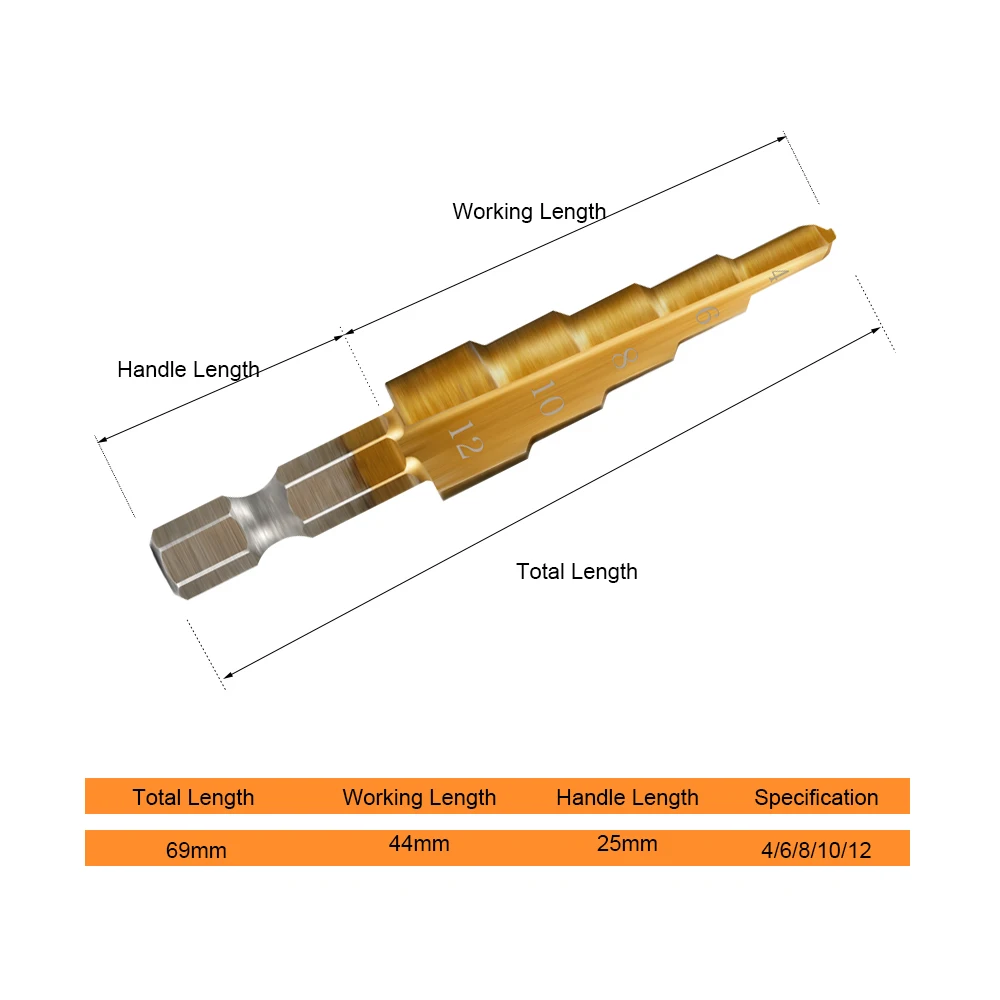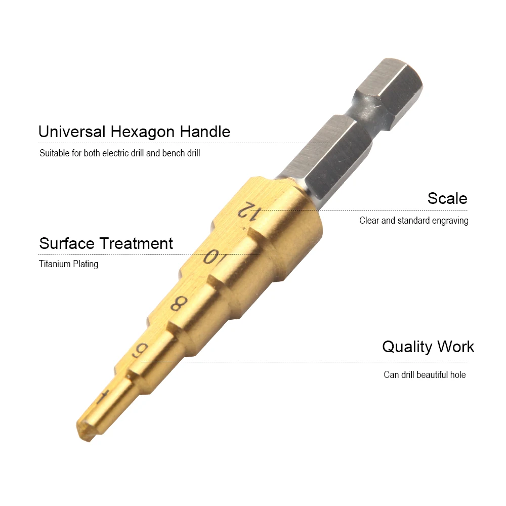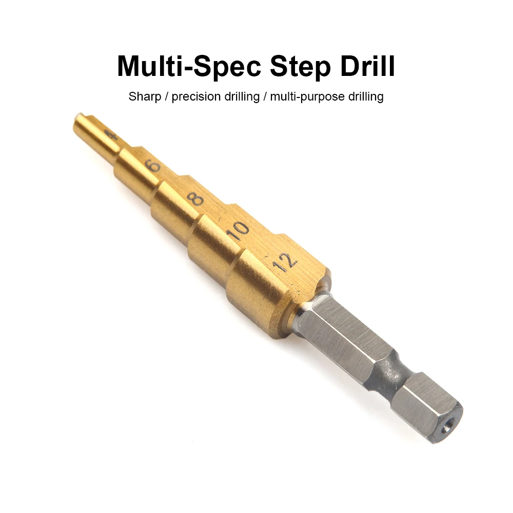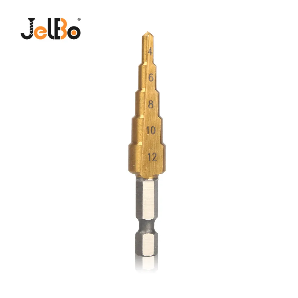 JelBo 4-12 мм шестигранный хвостовик конические отверстия резак шаг сверла Высокоскоростная сталь титановое покрытие электроинструменты Сверление дерева