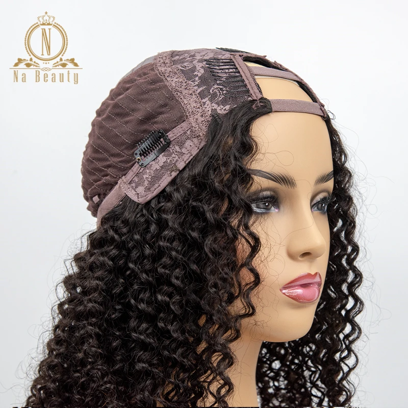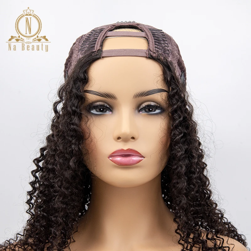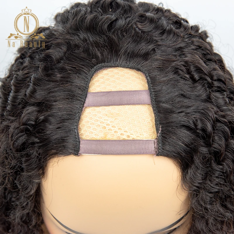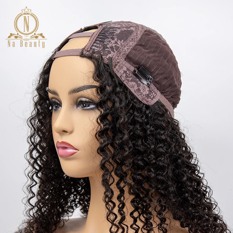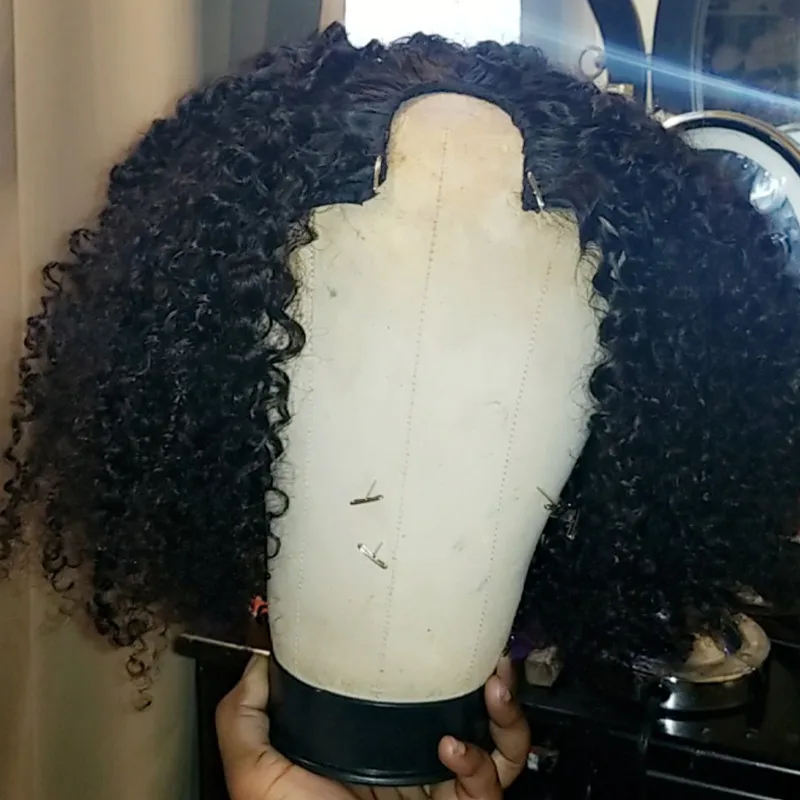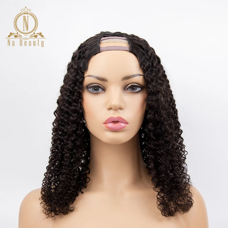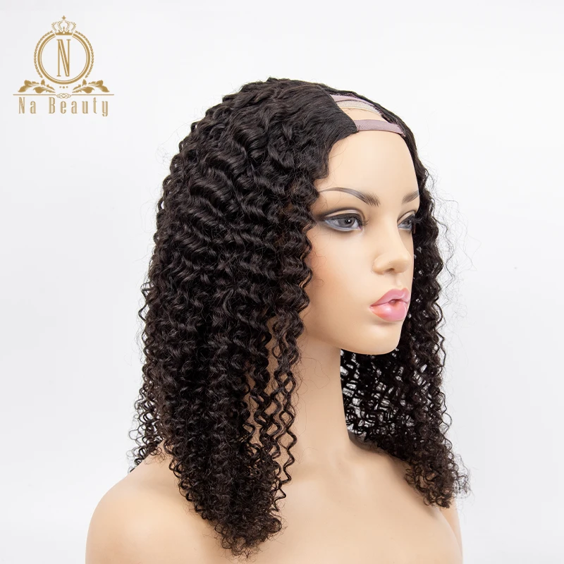 Кудрявые вьющиеся человеческие волосы U часть парики короткие кудрявые боб парик remy Волосы средняя часть 150% для женщин волосы натуральный черный цвет для женщин