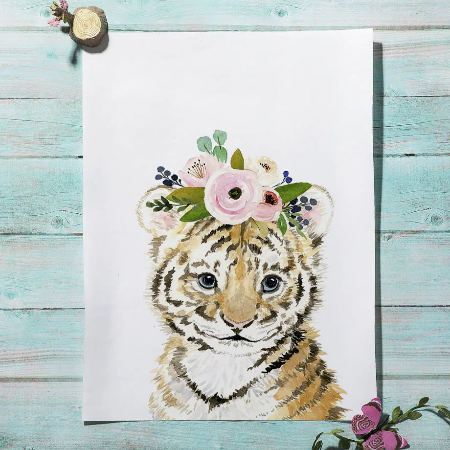 Винтаж джунгли девушка слон Леопард волк современный скандинавский ...