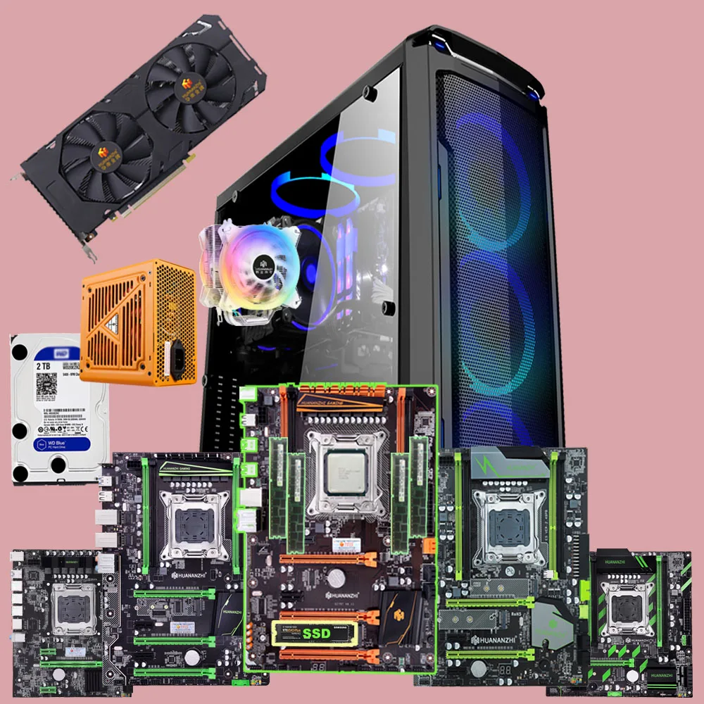 Материнская плата HUANANZHI X79 Combos CPU 2680V2 2690V2, видеокарта 4*16 ГБ, 64 ГБ, ОЗУ 500 Гб, SSD 2 ТБ HDD 500 Вт, блок питания GTX1660 6G