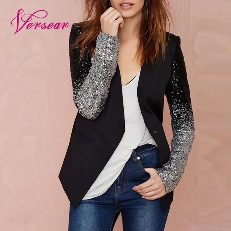 Женский блестящий пиджак Versear, блестящий Блестящий блейзер с длинным рукавом, элегантная офисная куртка, деловой костюм, верхняя одежда на весну-осень