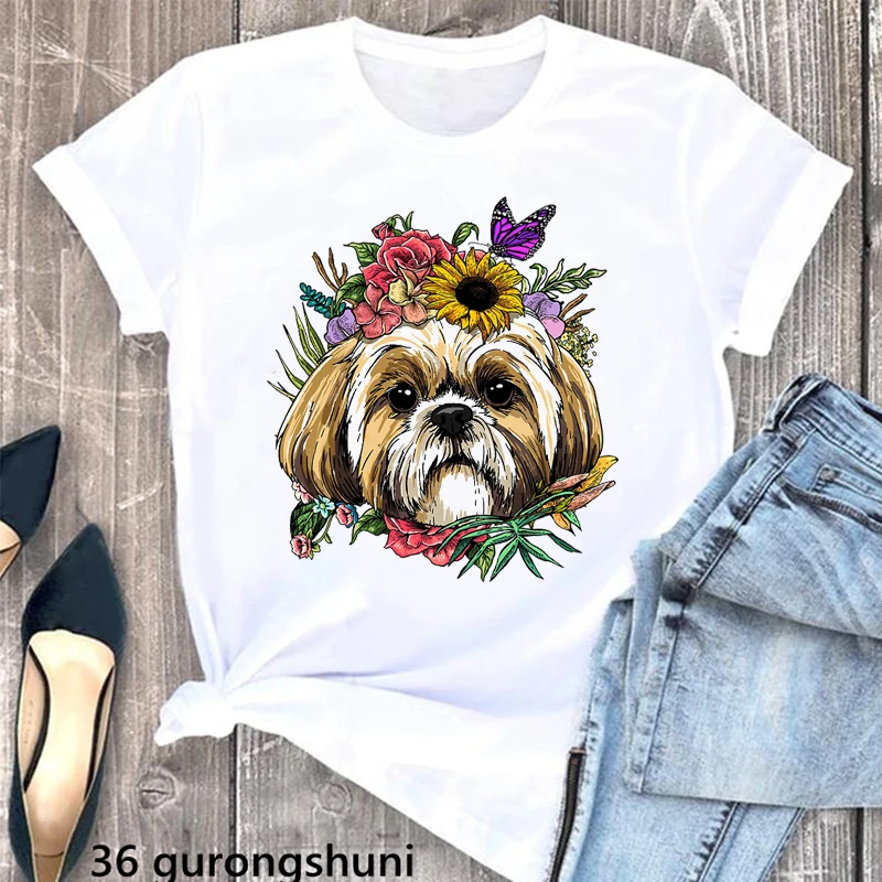 Милая футболка с цветочным принтом такса, женская летняя одежда, то...