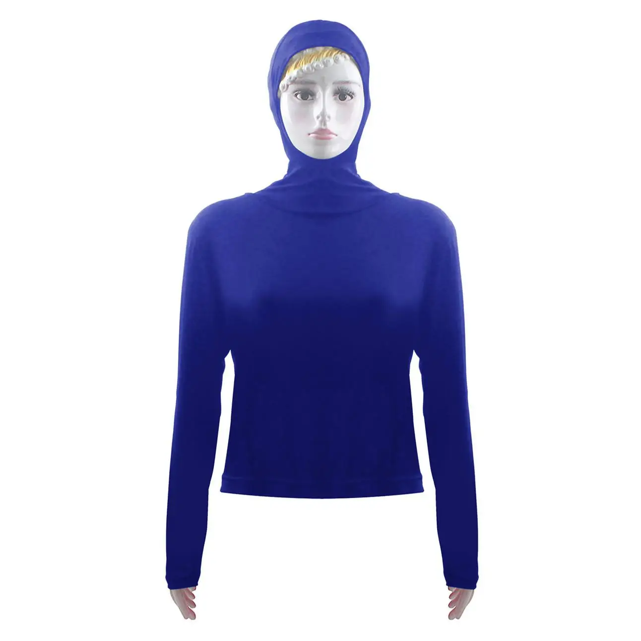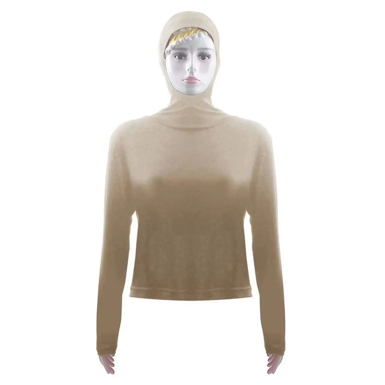 Женский топ с капюшоном, Солнцезащитная одежда для плавания, укороченные топы, блузка с длинным рукавом, эластичный пляжный летний мусульманский пуловер, топ, арабский ислам, повседневный Топ