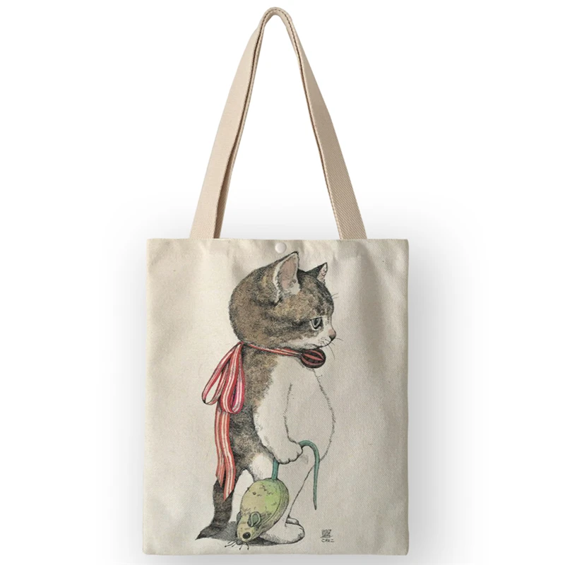 Японский стиль, Холщовая Сумка на плечо для школьников, Повседневная Сумка-тоут для покупок, женские сумки с милым принтом кошачьей мордочки AKB01060 Наименование товара: Сумка-тоутМатериал: хлопок и ленРазмер: 35 × 40 см/13,8 × 15,7 дюймаСтруктура: внутренний карман для телефона/ключа, застежкаУпаковочный лист: 1 * сумка-тоут