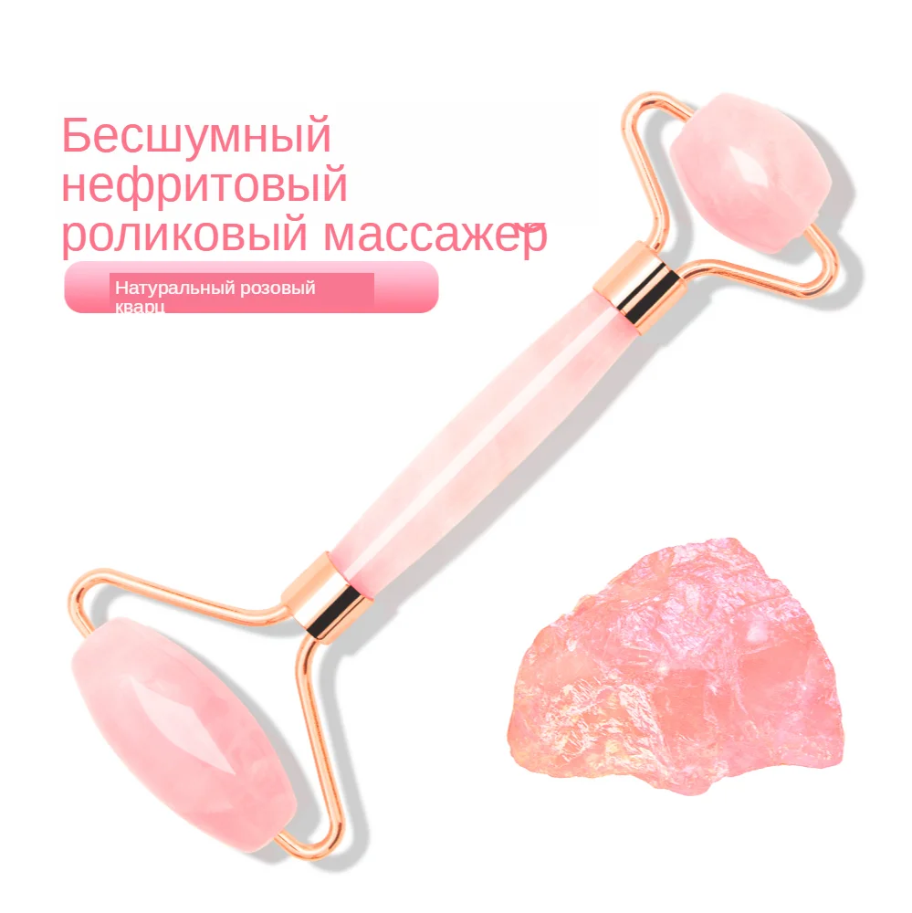 Нефритовый ролик розового кварца, роликовый массажер для похудения лица, Двойные головки, ролики для лица, каменные гуа-Ша массаж, ролики для подтяжки лица