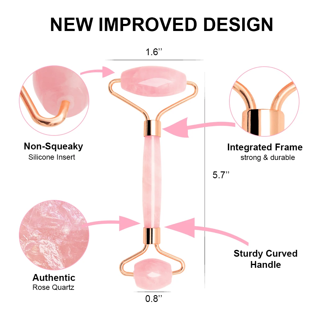 √ Двухсторонний розовый КВАРЦЕВЫЙ ролик-Большой Ролик идеально подходит для шеи, подбородка, щек и лба, а меньший идеально подходит для вокруг глаз, носа и губ. Ролик способствует циркуляции крови, что может уменьшить отечность и сморщивание