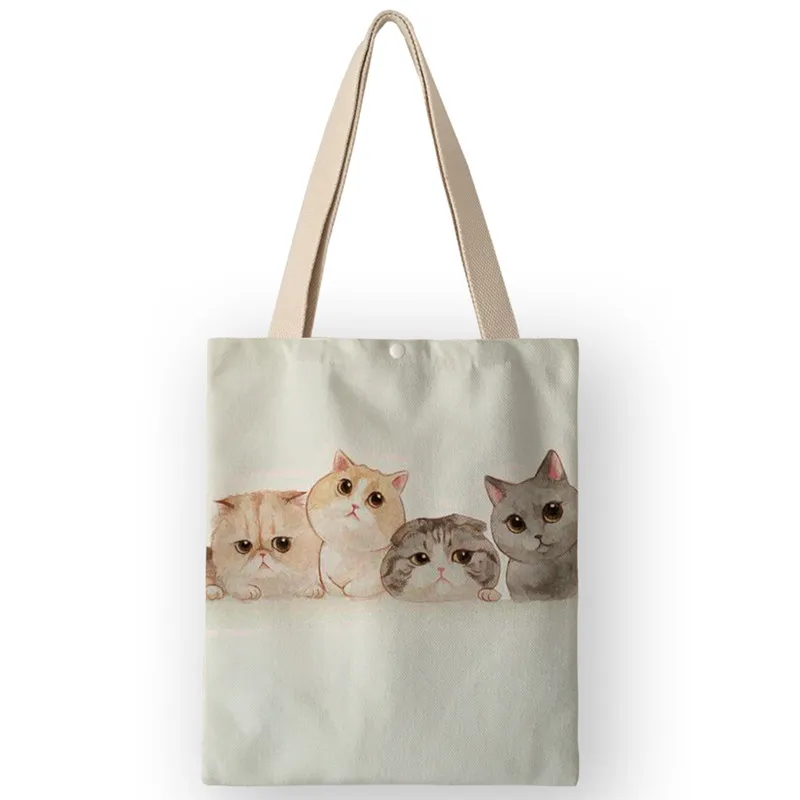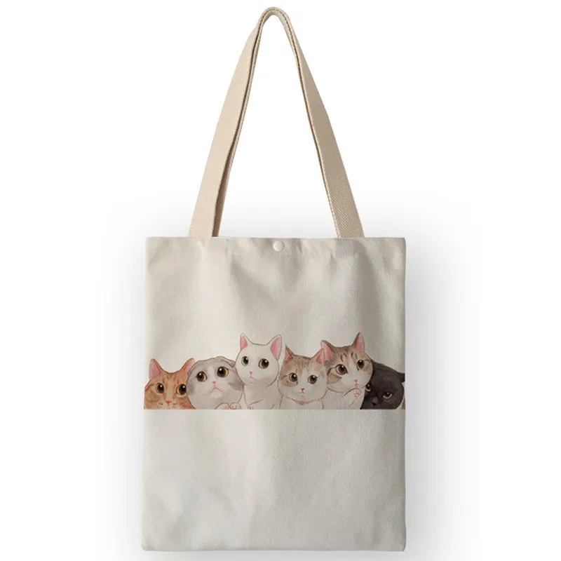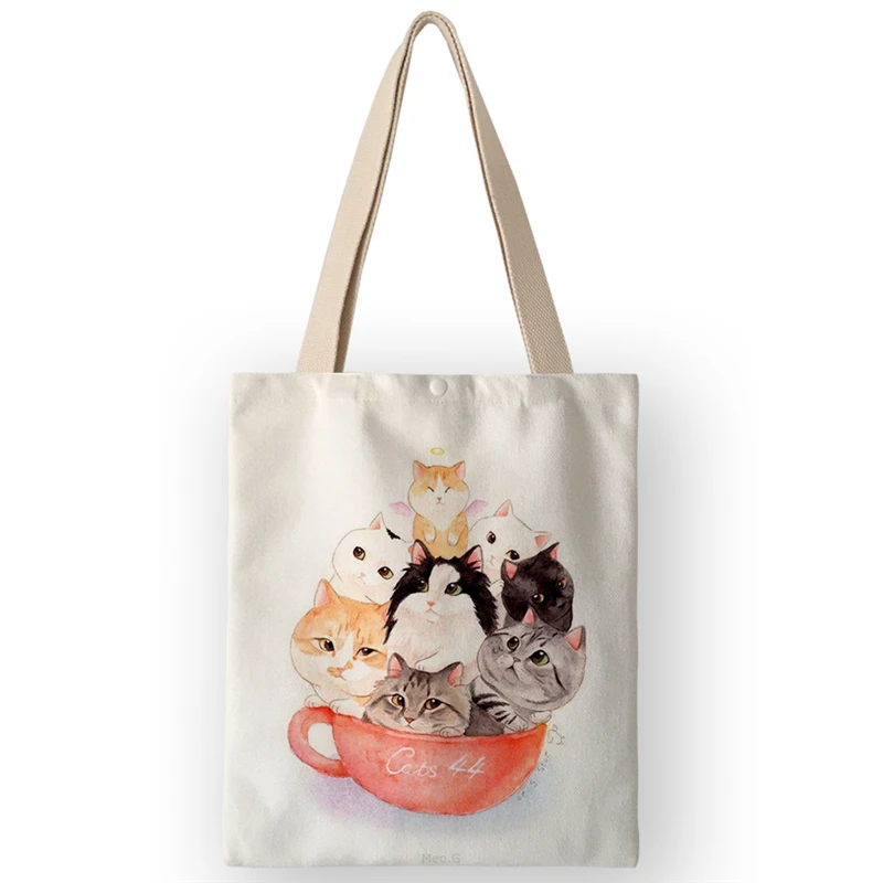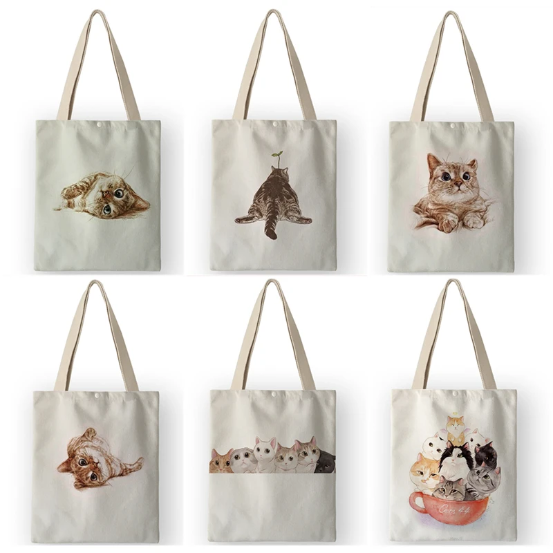 AKB01061 красивые Экологичные сумки для покупок с мультипликационным принтом кошки для женщин, женские холщовые сумки с мультипликационным принтом животных, сумка-тоут