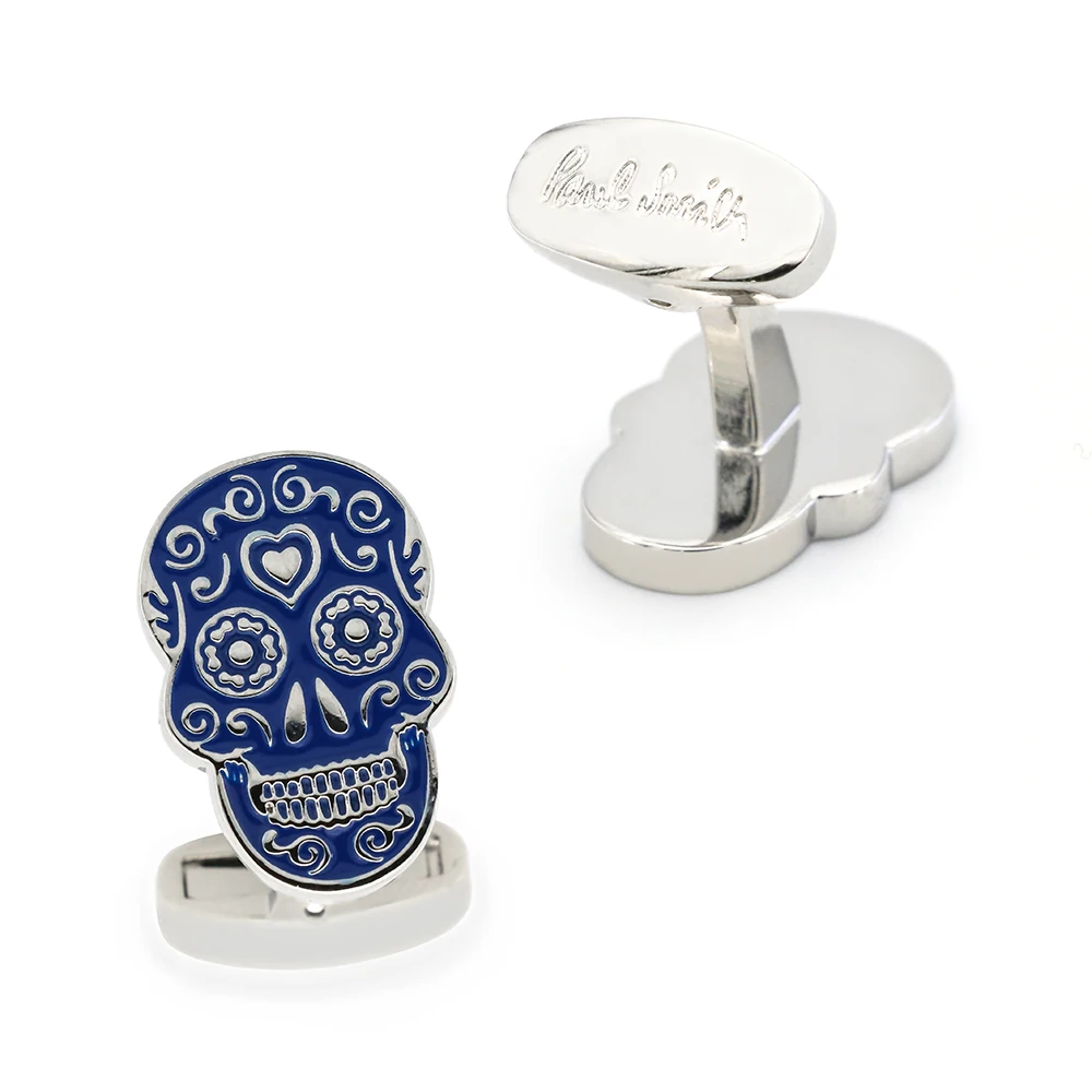 Череп дизайн мертвые запонки скелет для мужчин качество Медь Материал синий цвет запонки оптом и в розницу
