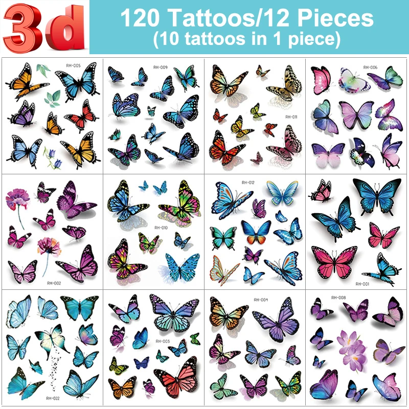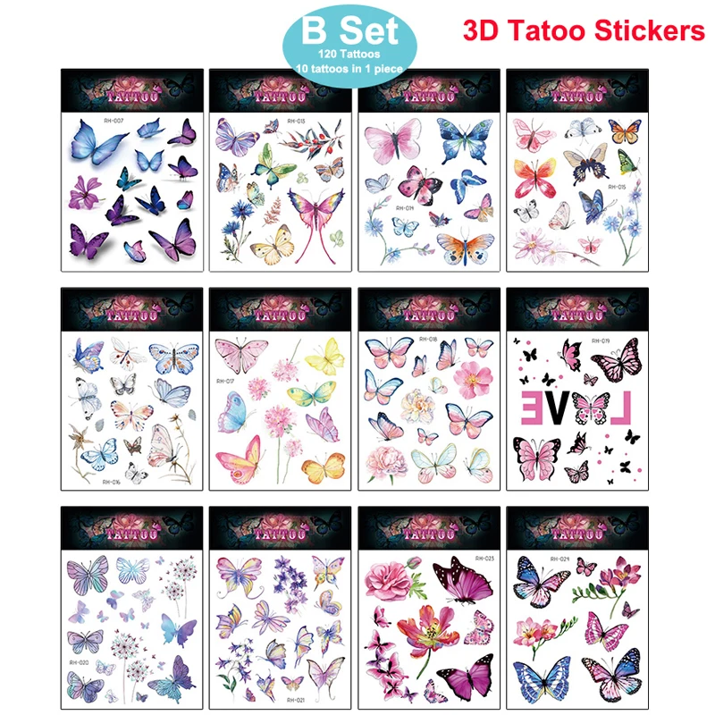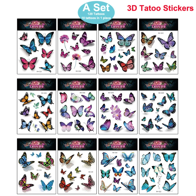 12 шт.120 татуировки (10 татуировок в 1 шт.) 3D Татуировка наклейка водостойкая Бабочка Женская Сексуальная до ключиц грудь до лодыжки Временная