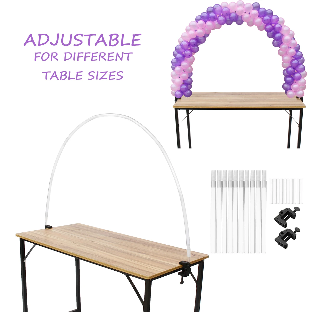 Регулируемый Размер: Эта дужка для воздушных шаров очень гибкая, подходит для большинства представленных на рынке столов. Высота и ширина зависят от размера вашей таблицы.