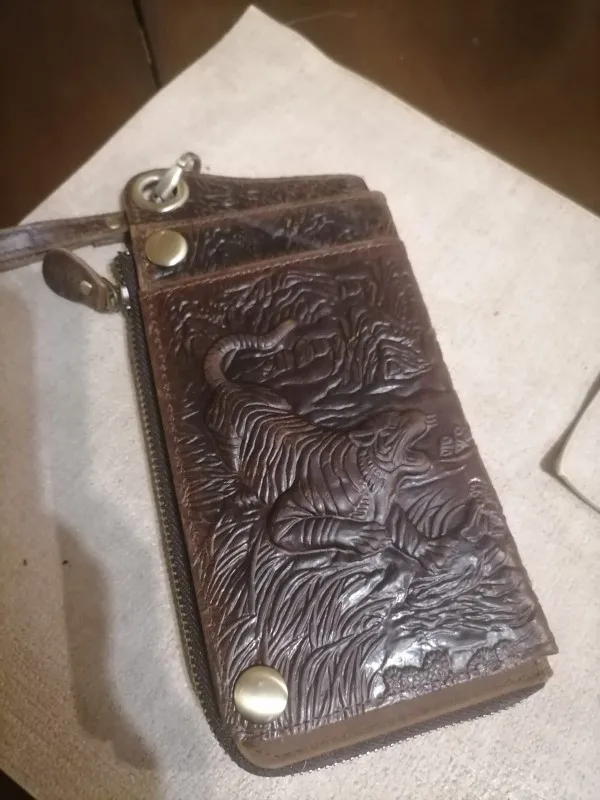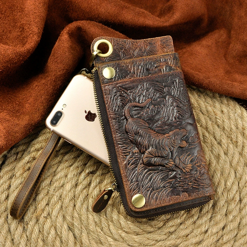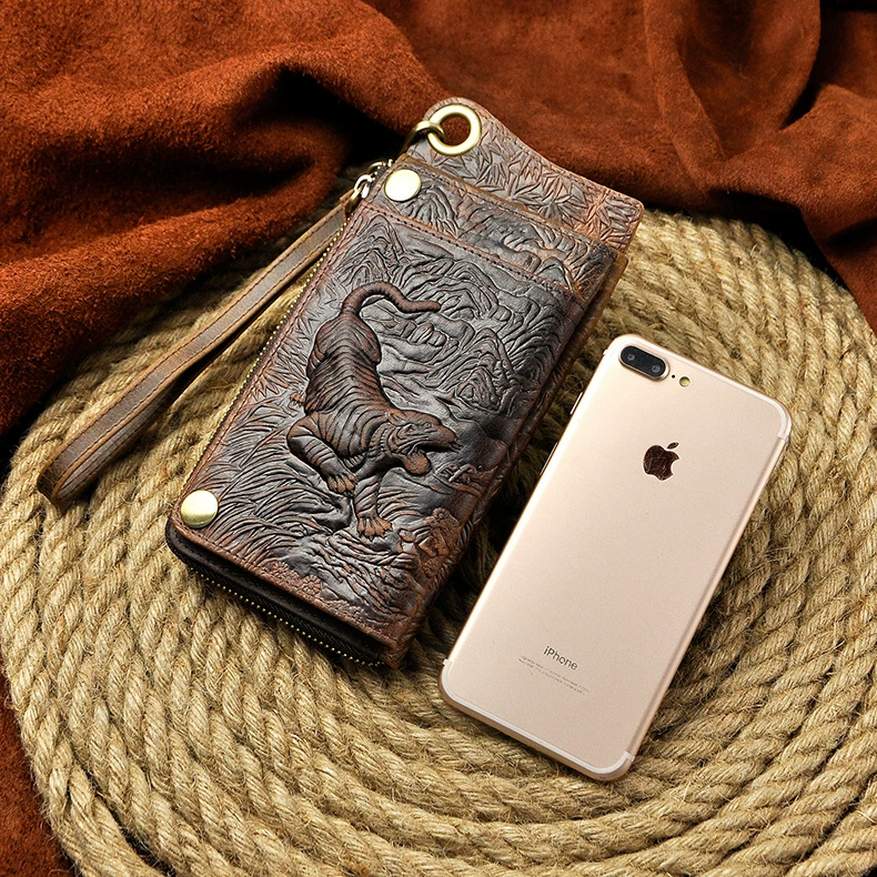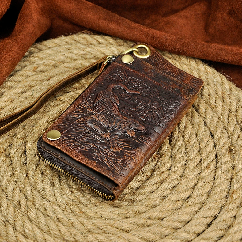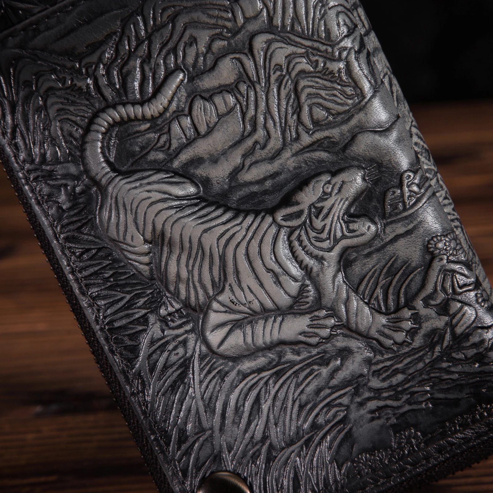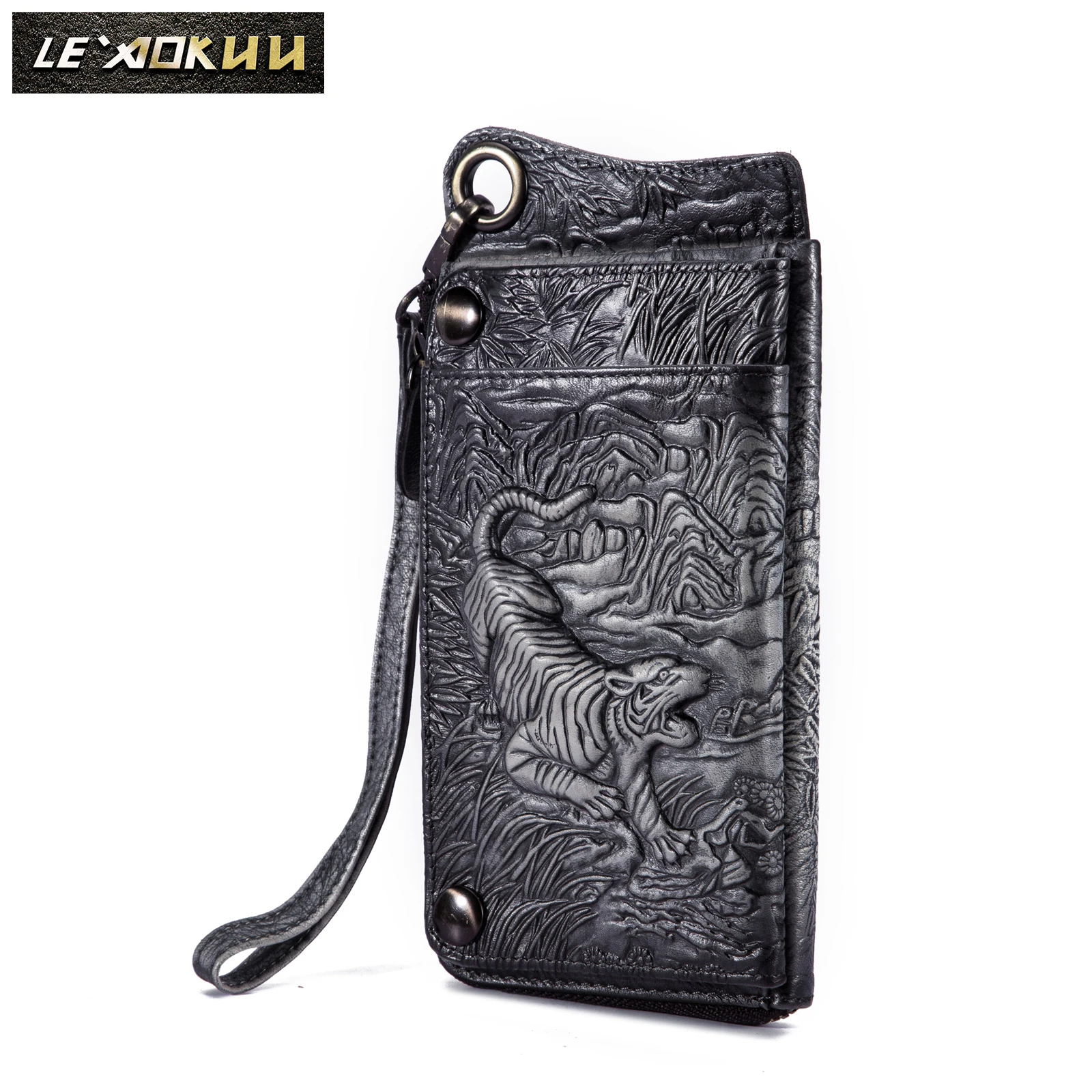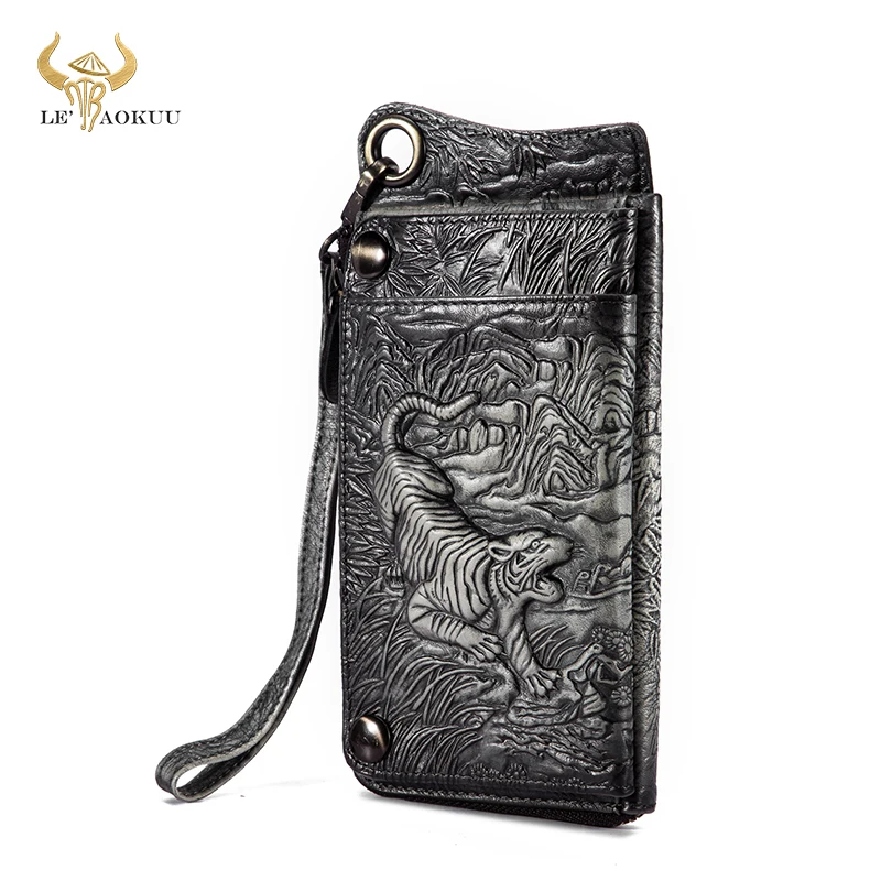 Модный Мужской органайзер кожаный дизайн с тиснением тигра Чековая книжка на цепочке Карманный Кошелек на молнии кошелек клатч для телефона мужской ремень