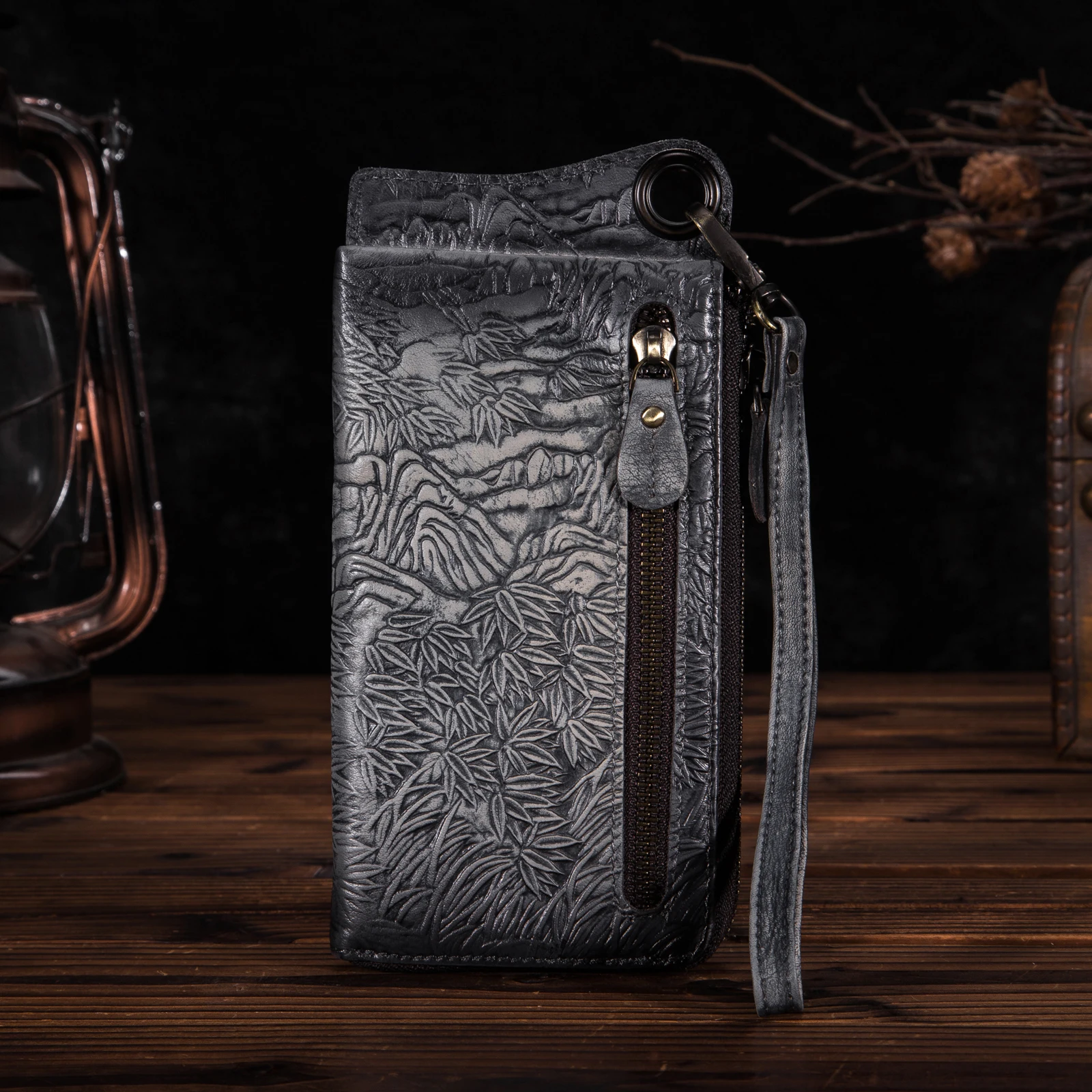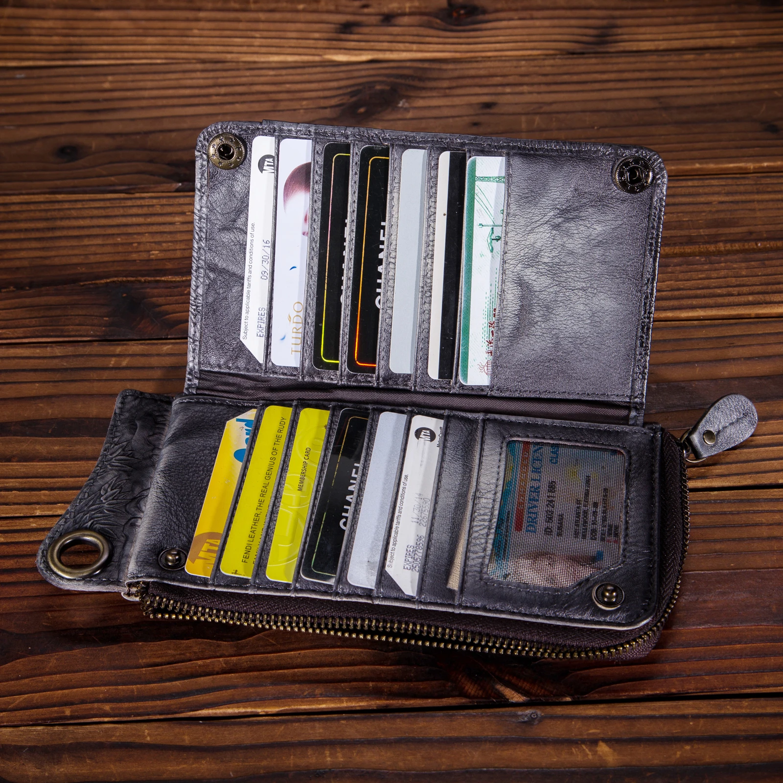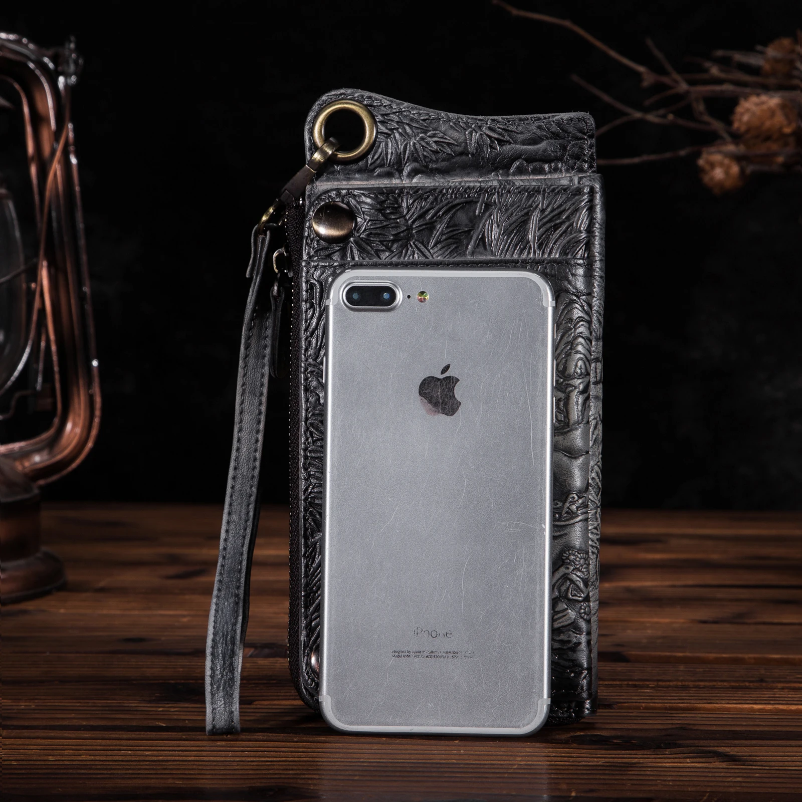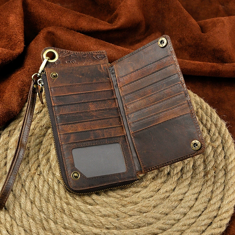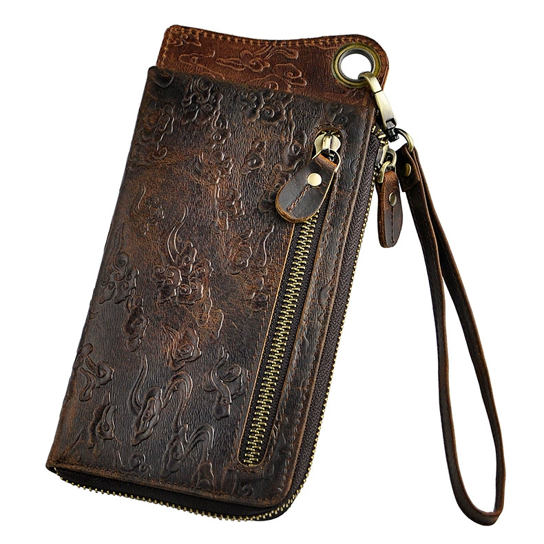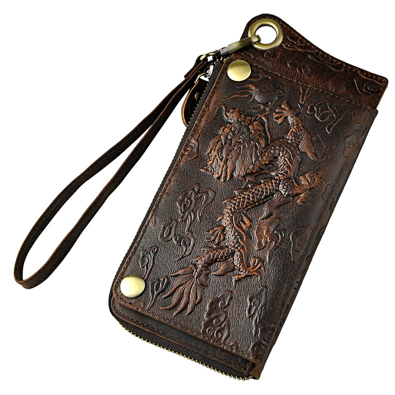 Модный Мужской органайзер кожаный дизайн с тиснением тигра Чековая книжка на цепочке Карманный Кошелек на молнии кошелек клатч для телефона мужской ремень