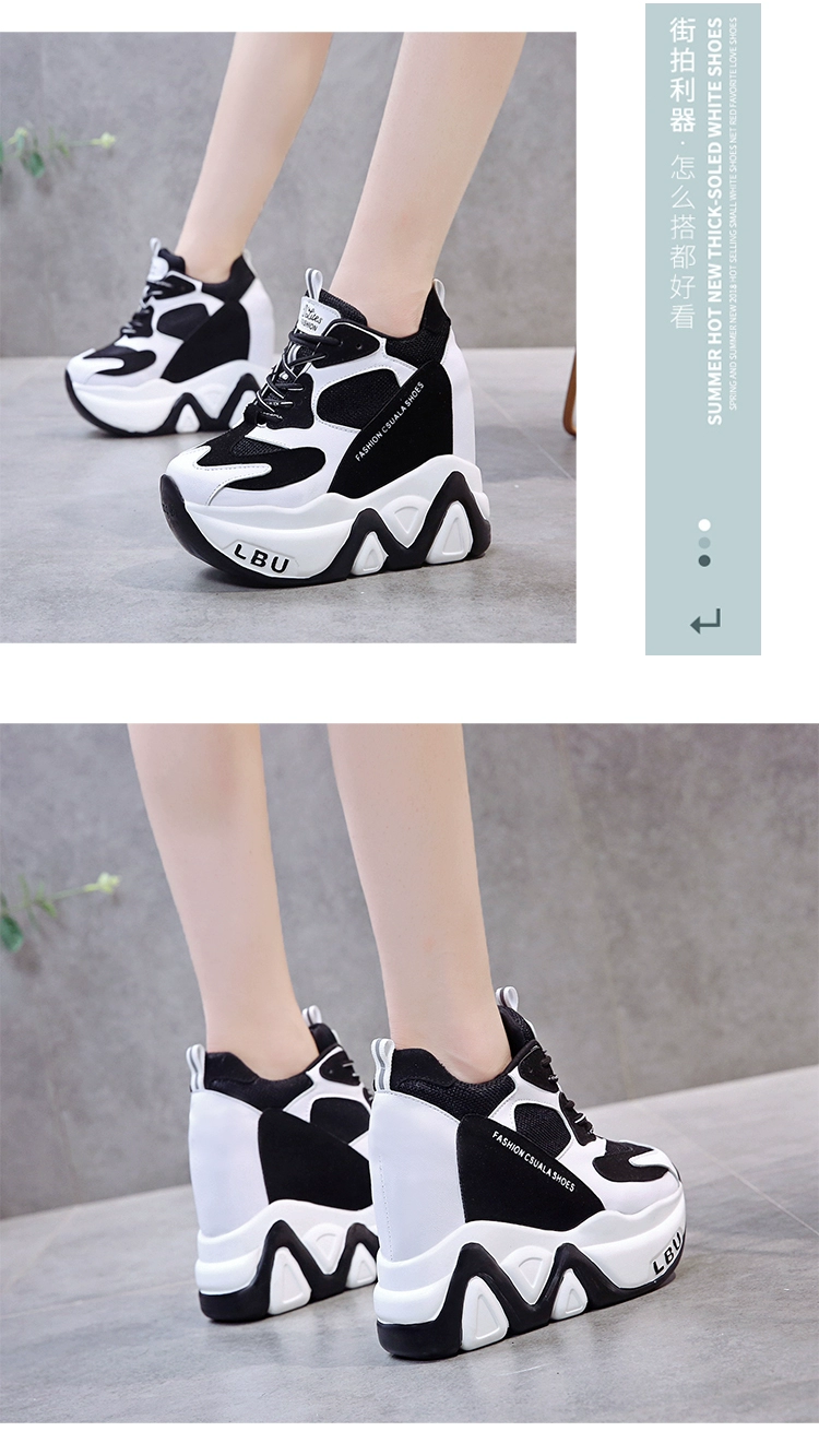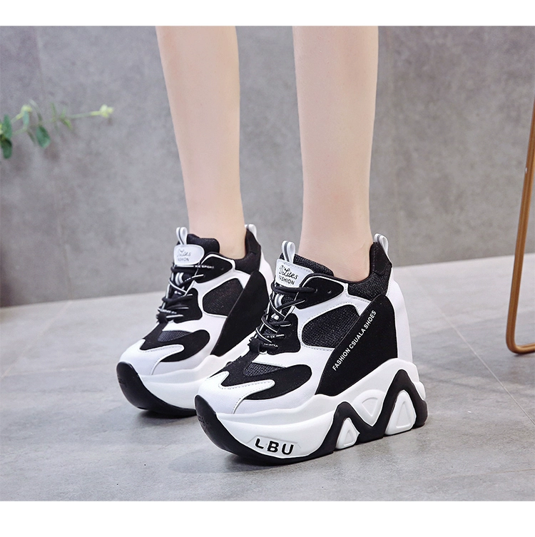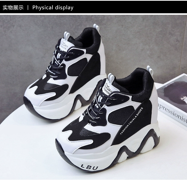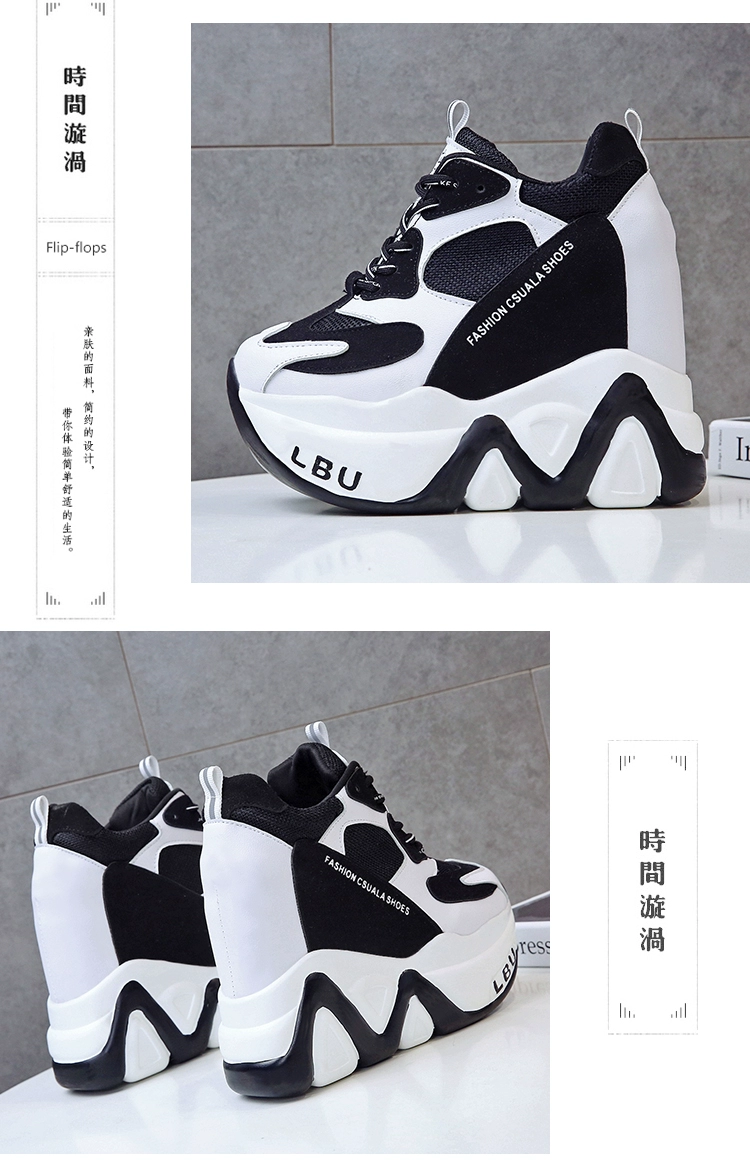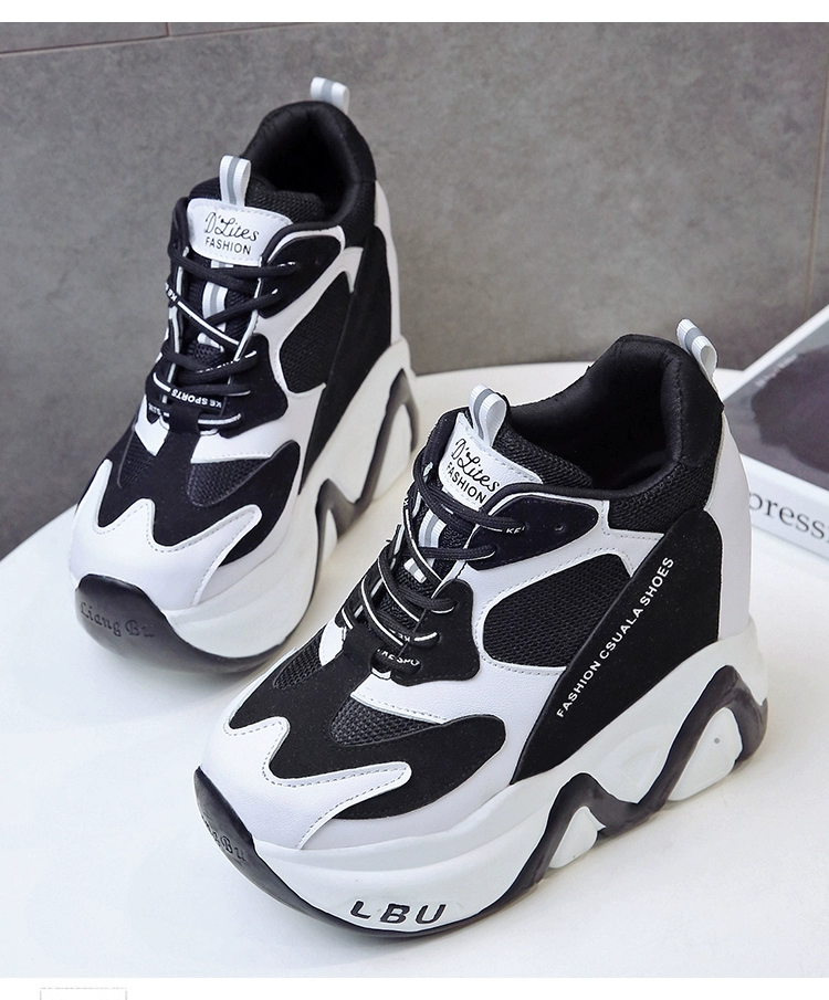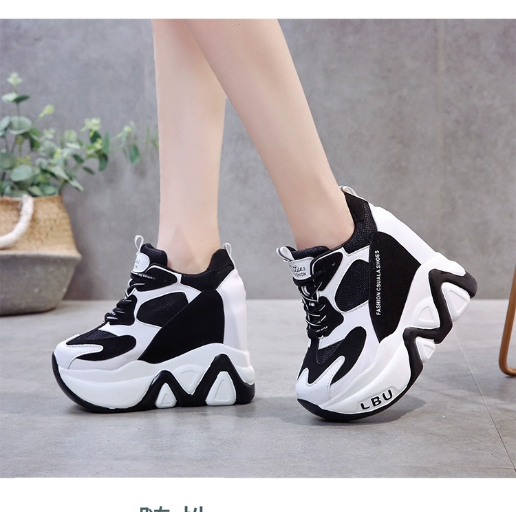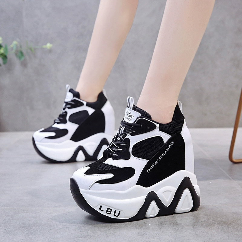 Кроссовки женские кожаные, черные, на танкетке 12,5 см, дышащие, повседневные