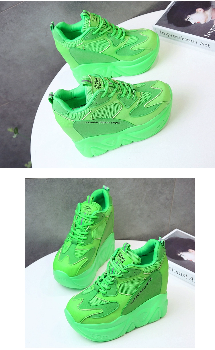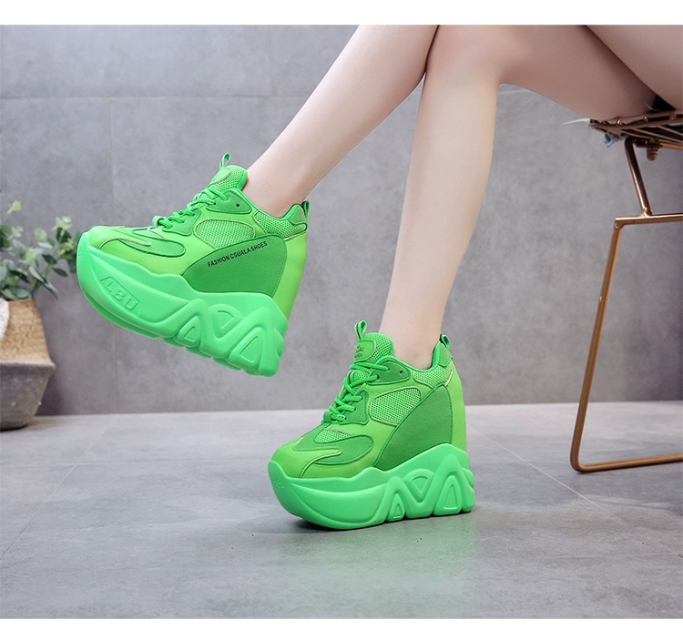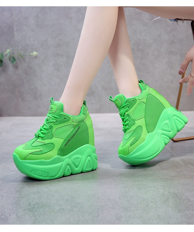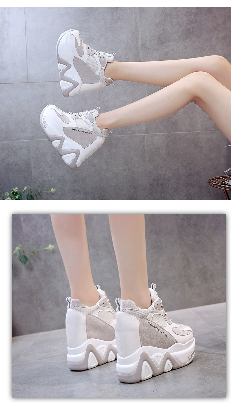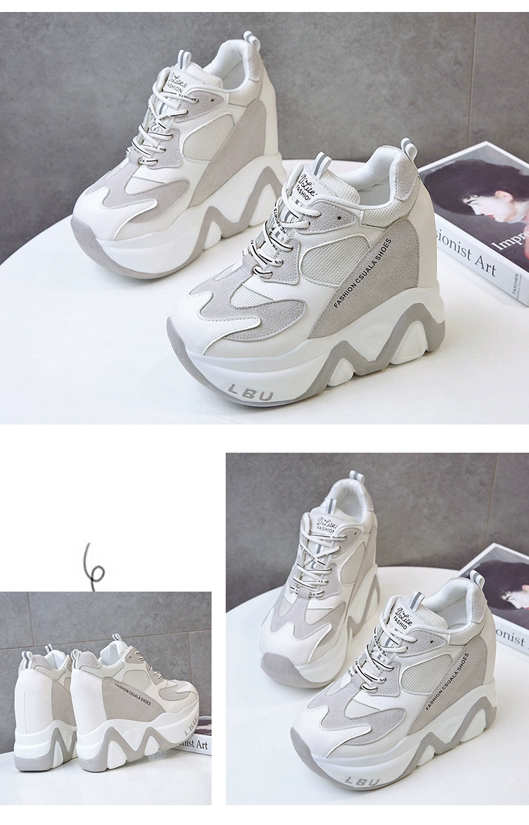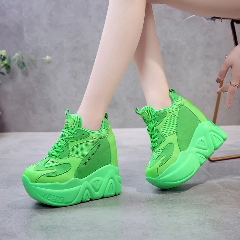 Кроссовки женские кожаные, черные, на танкетке 12,5 см, дышащие, повседневные