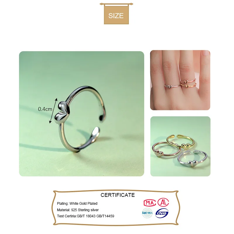 Trustdavis 100% Серебро 925 пробы милое Сердце Открытое кольцо на палец для женщин девочек детей Рождество серебро 925 ювелирные изделия подарок DT80