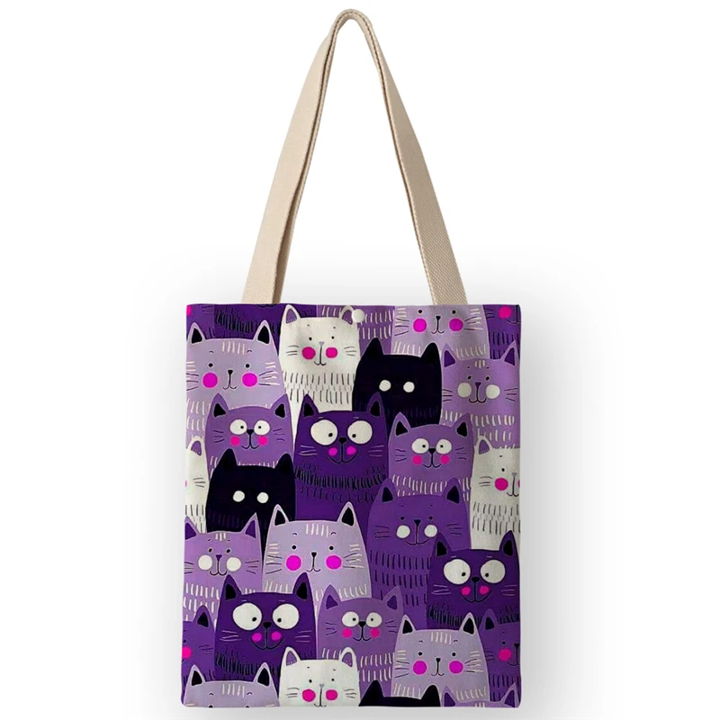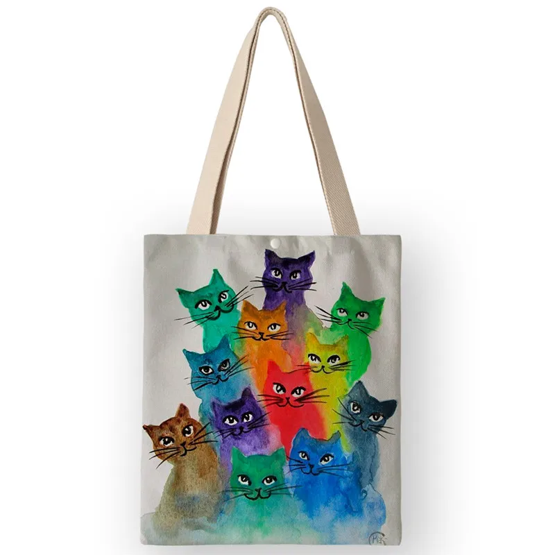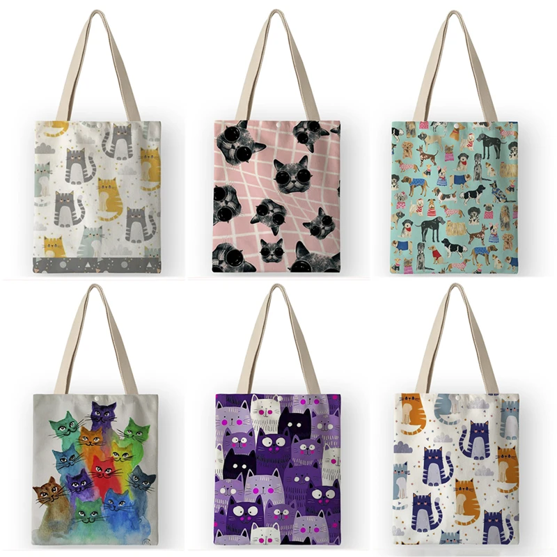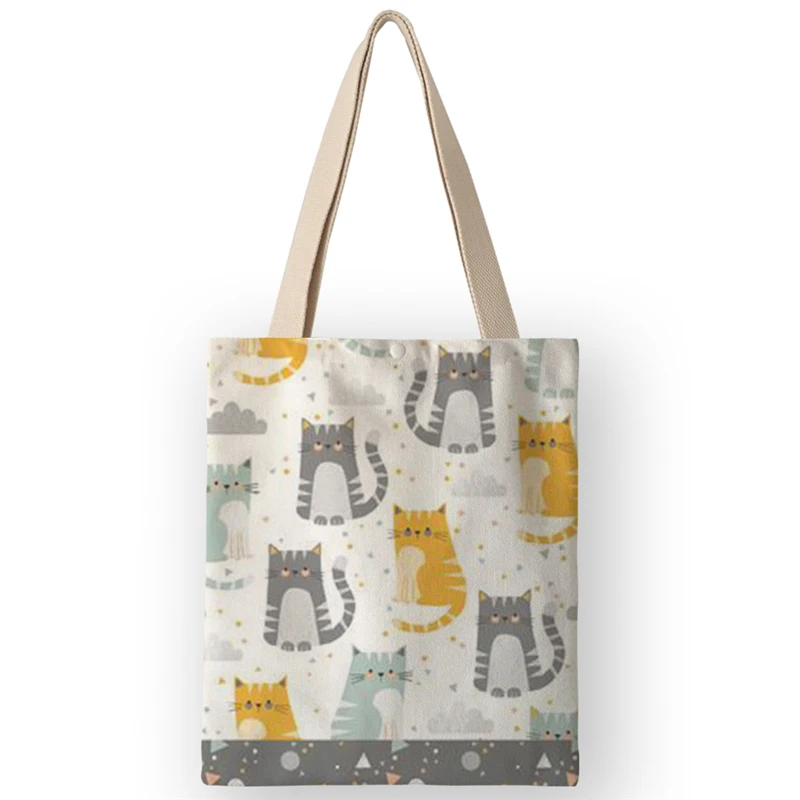 AKB01062 повседневные парусиновые сумки для женщин 2019 персонализированные сумки с рисунком мультяшного кота, вместительная сумка-тоут с карманами