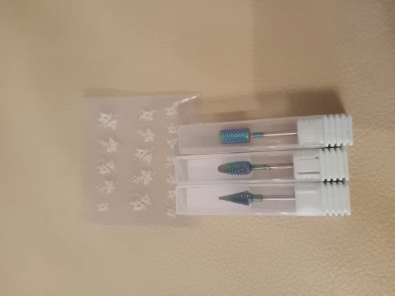 Очень красивые сверла для ногтей. Доставка в срок, не занимает много времени, продукт не поврежден, хорошо упакован. Я доволен этим заказом. Закажем снова. Продавец даже включил подарок. Действительно приятно!