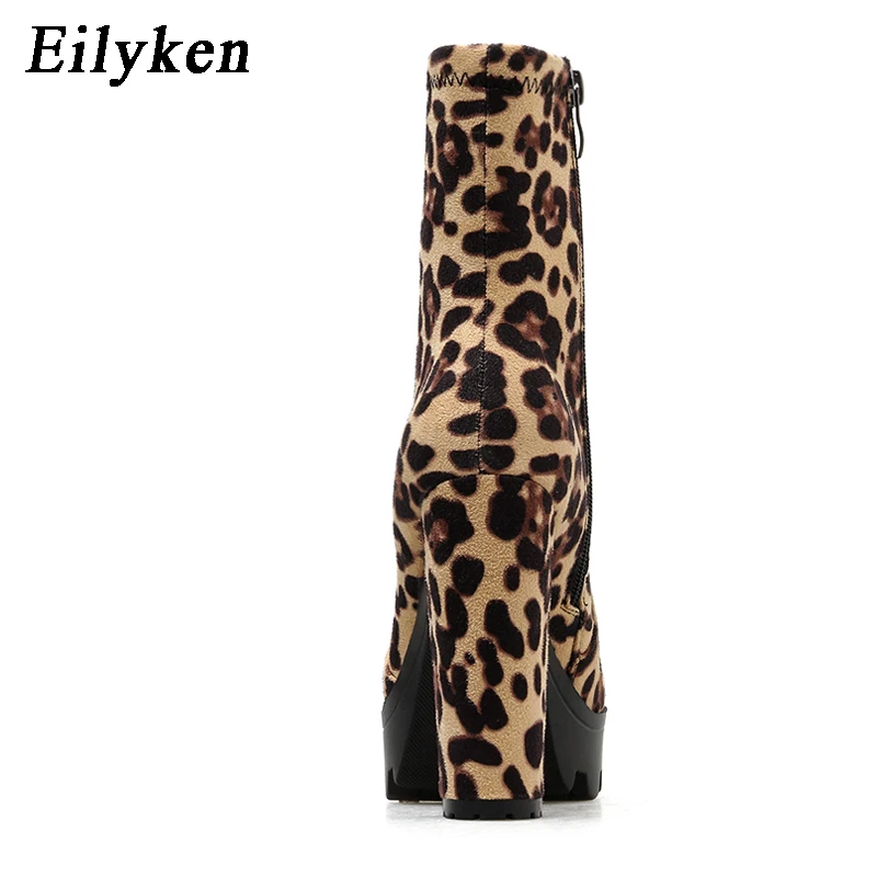 Ботинки женские из флока, на платформе, с леопардовым принтом, на толстом каблуке, на молнии