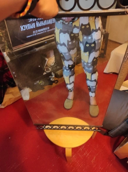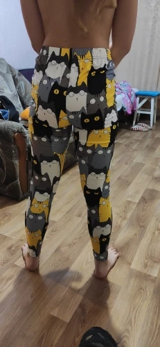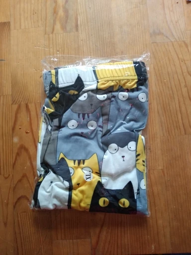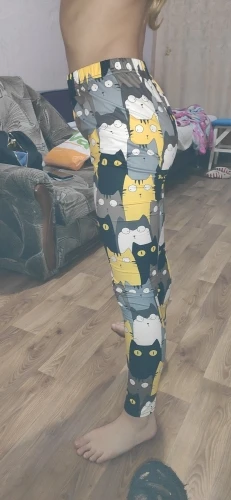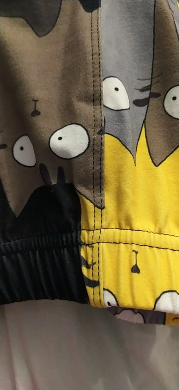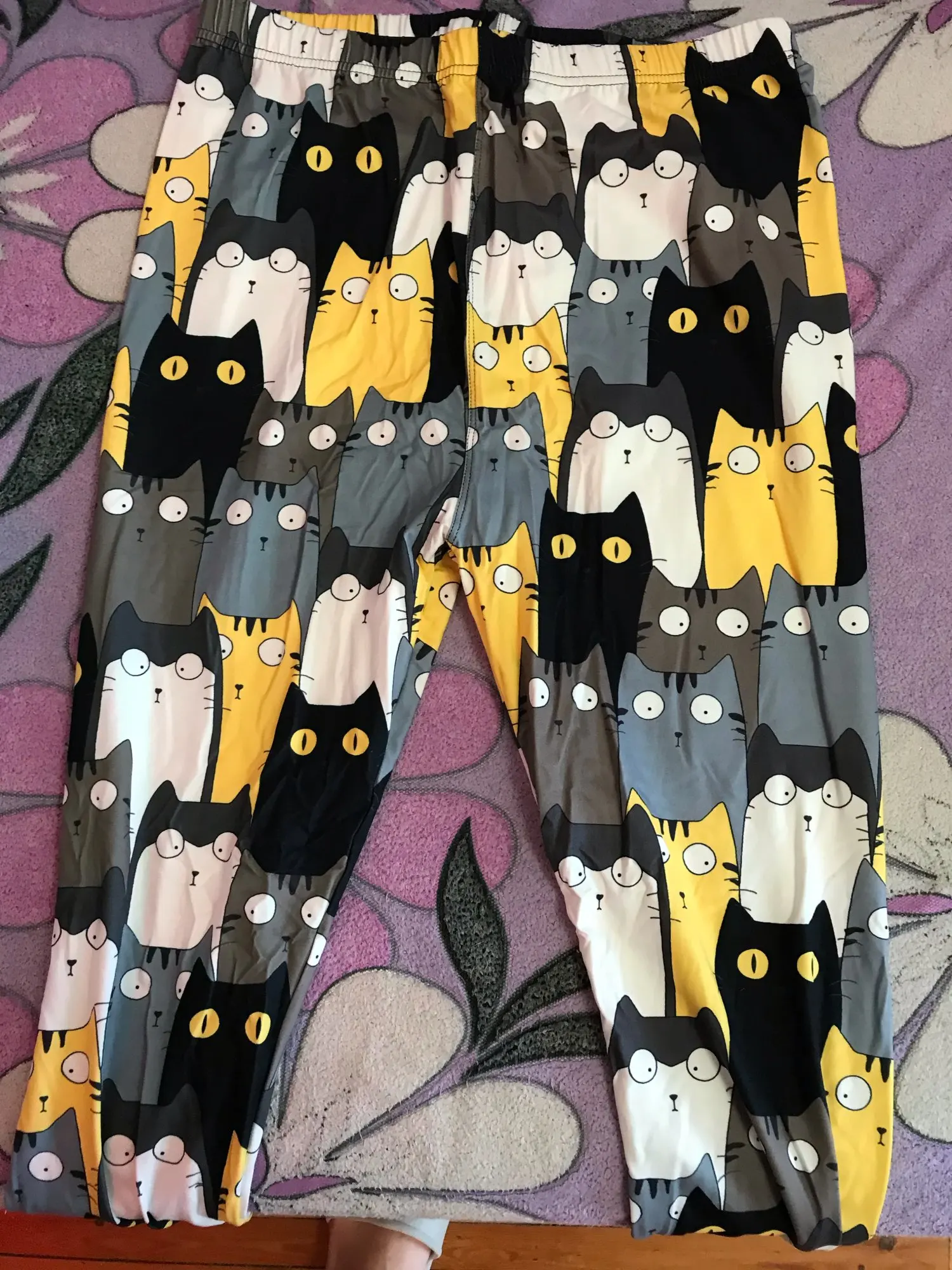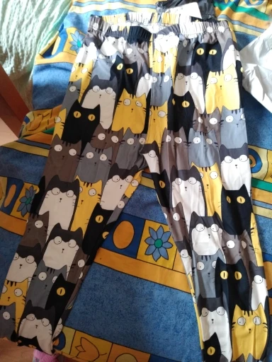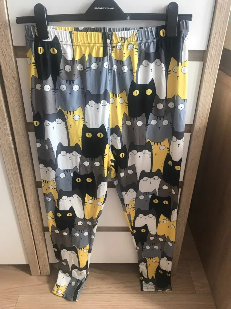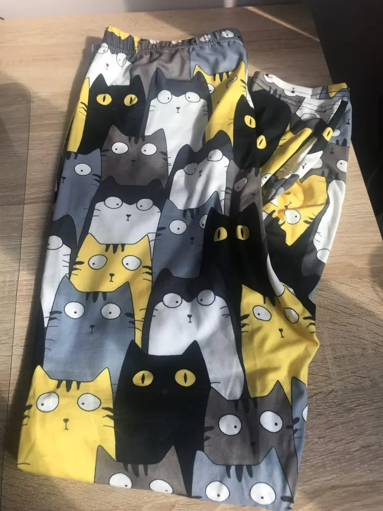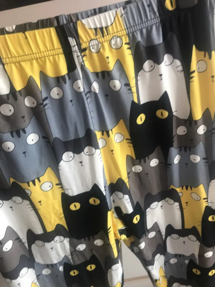 Что-то не так с шитьем-слишком широкое на талии и слишком узкое на лодыжках. Довольно неудобно носить. В противном случае рисунок кошки приятный.