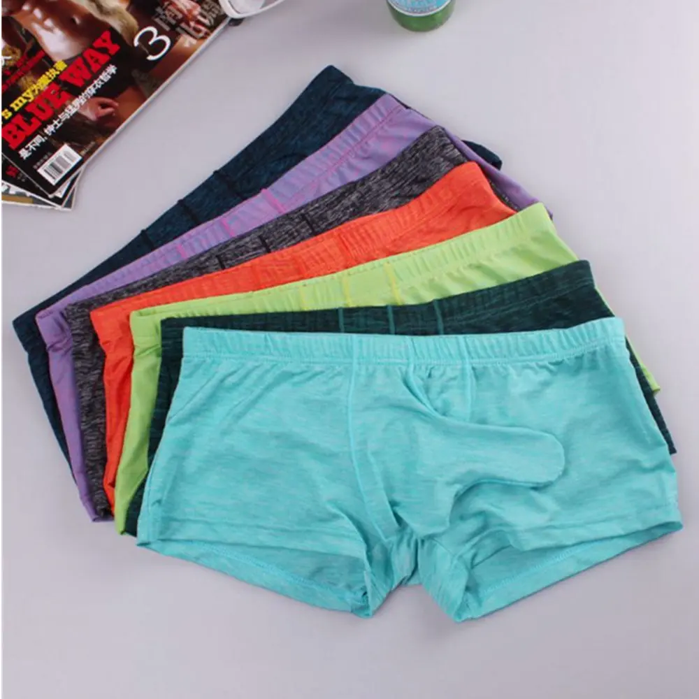 Сексуальное нижнее белье, мужские трусы-боксеры из хлопка со слоном, летние ультра-тонкие шорты, свободные, выпуклые, объемные, однотонные, Трусы со средней талией, спандекс, мода