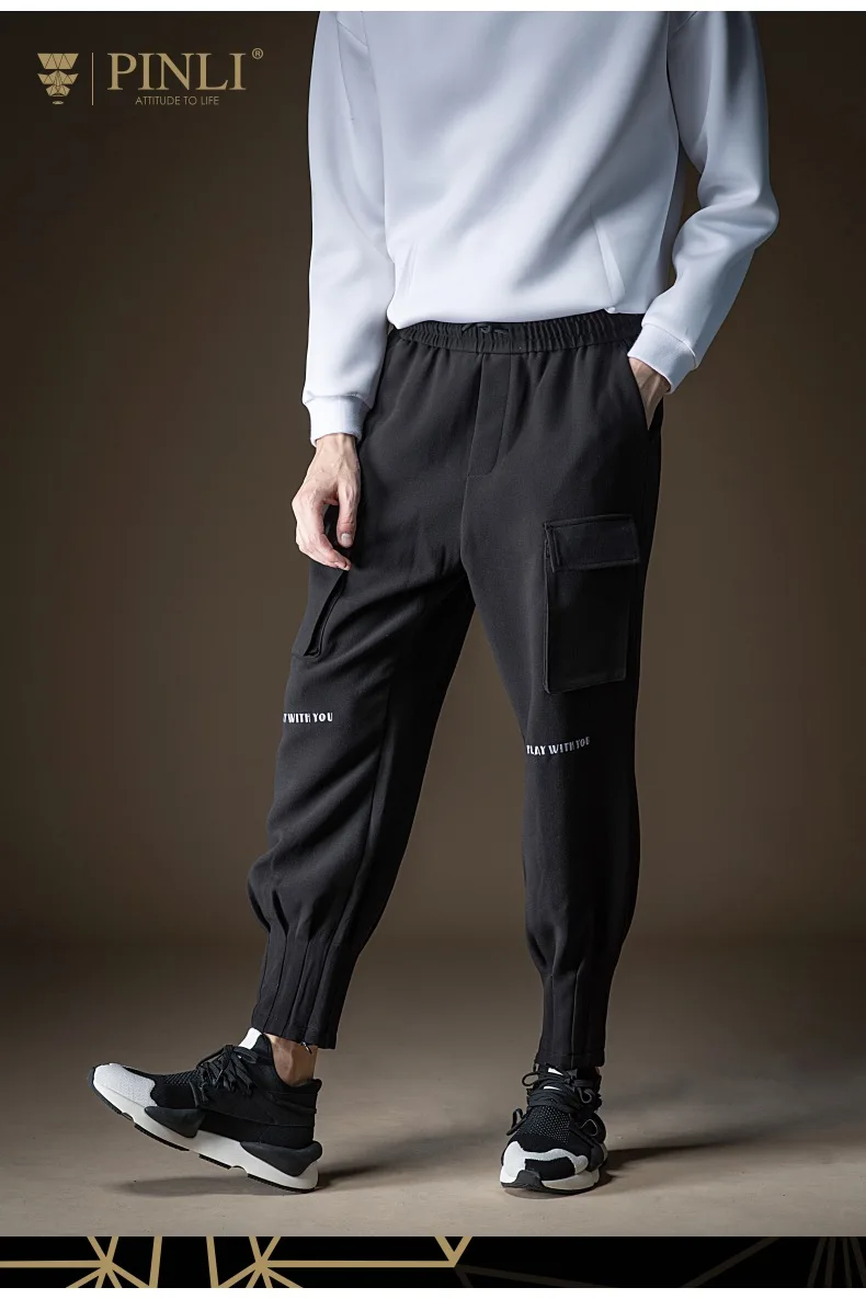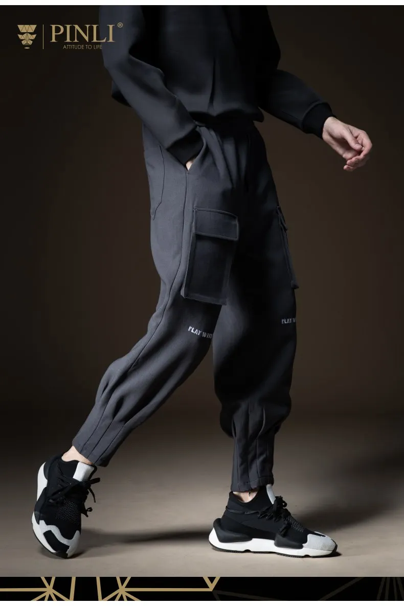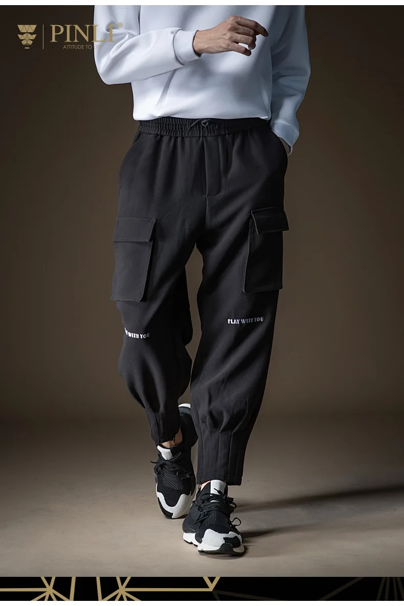 Штаны-карго для бега, спортивные штаны Pinli, осень 2019, новинка, мужские свободные, маленькие, несколько мешков, рабочая одежда, штаны для отдыха, B193217178