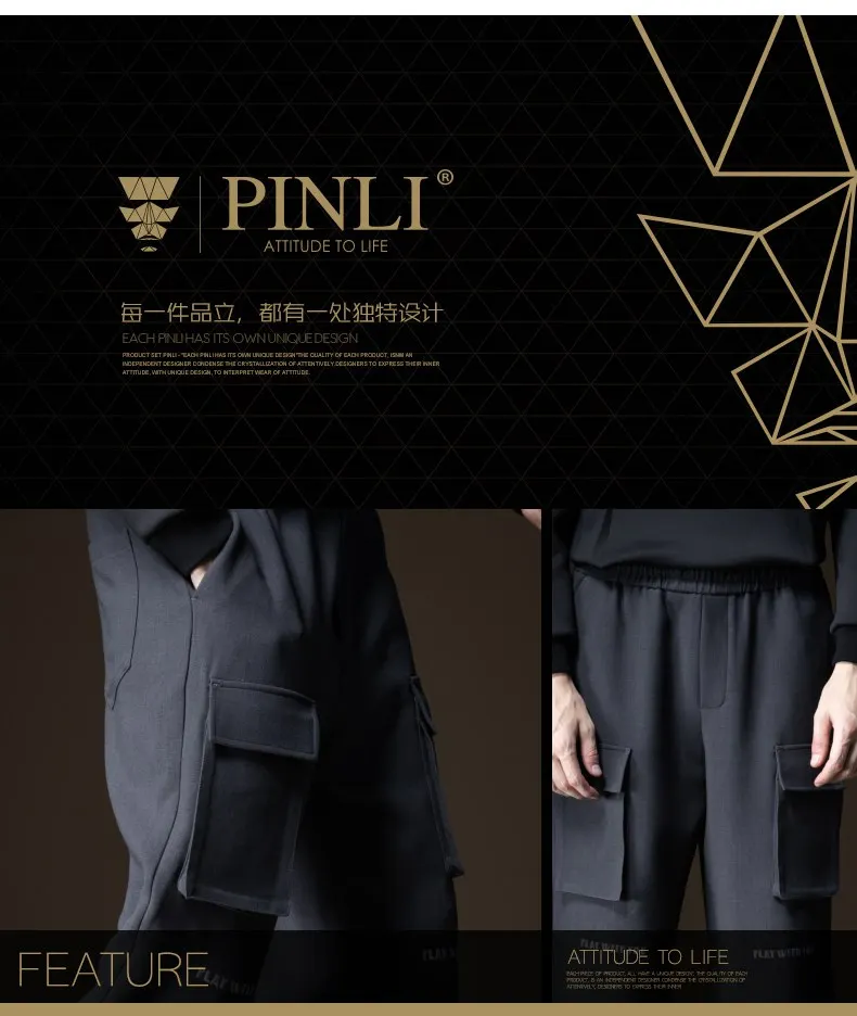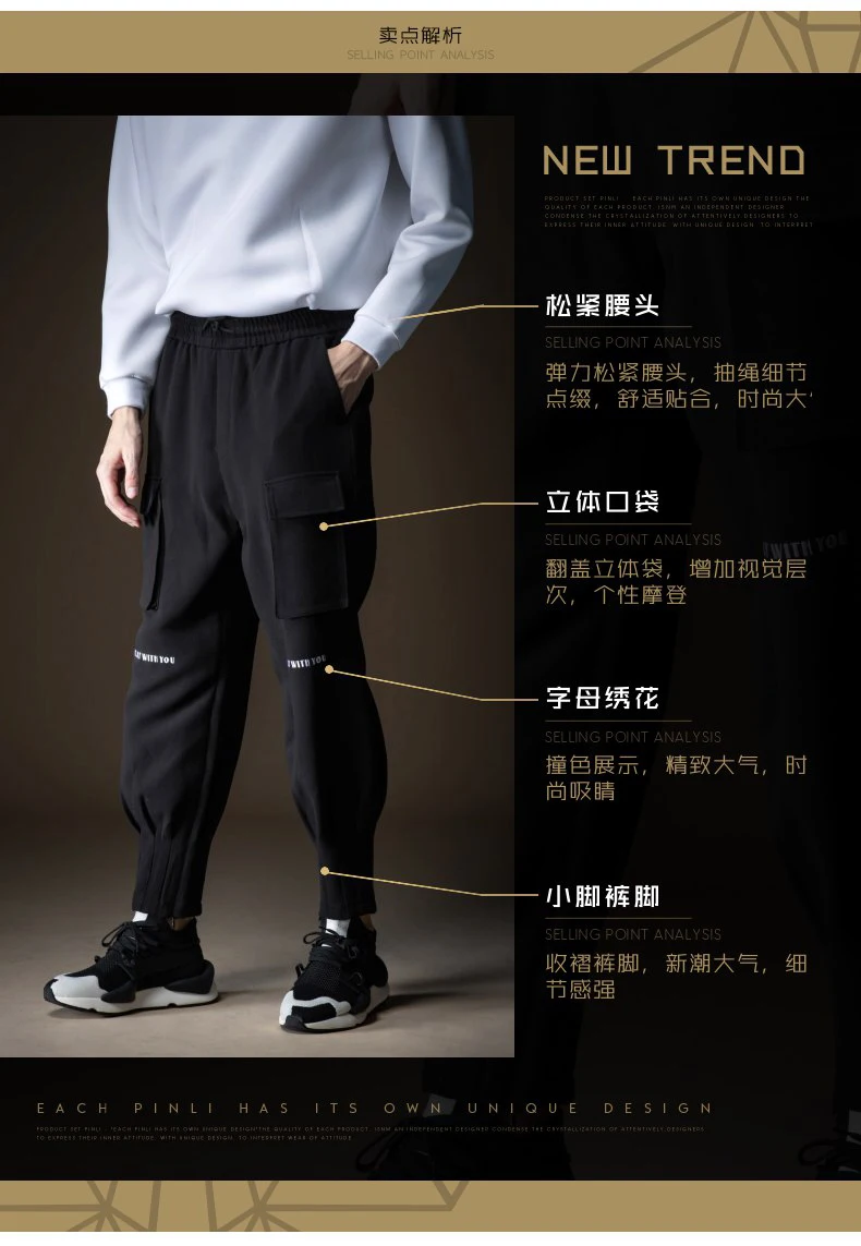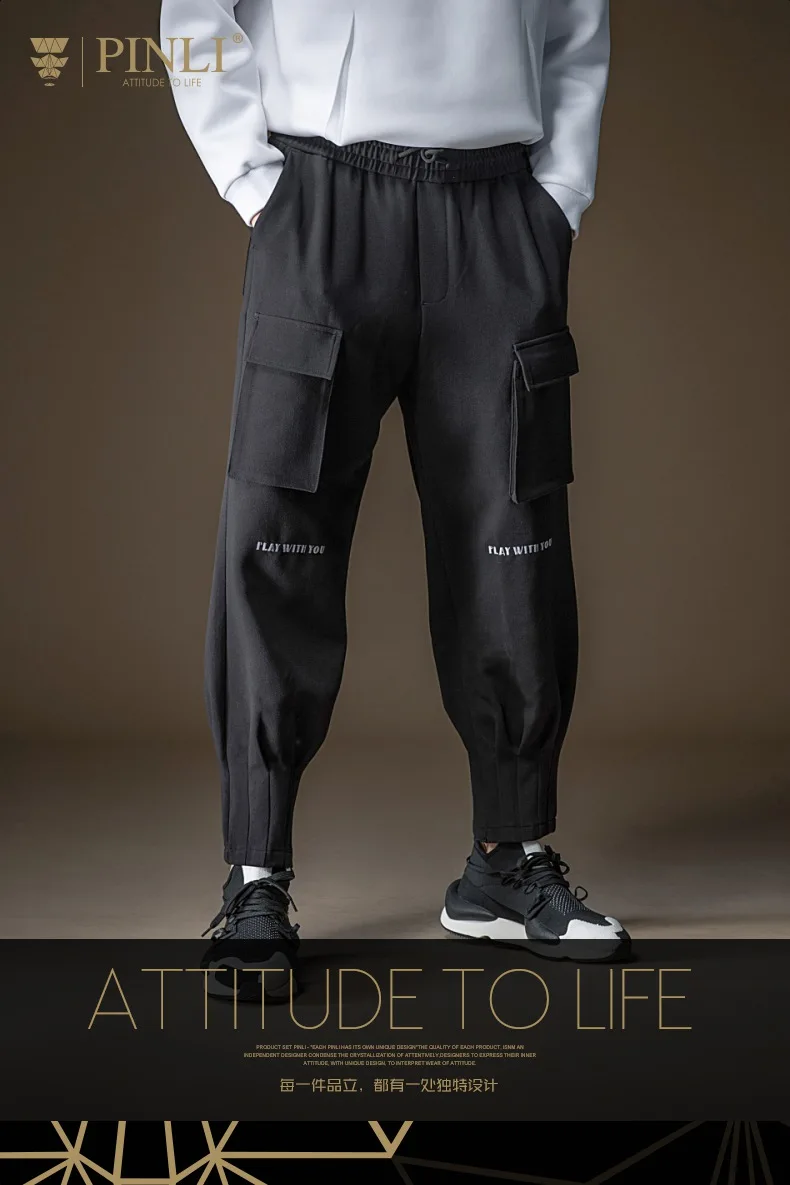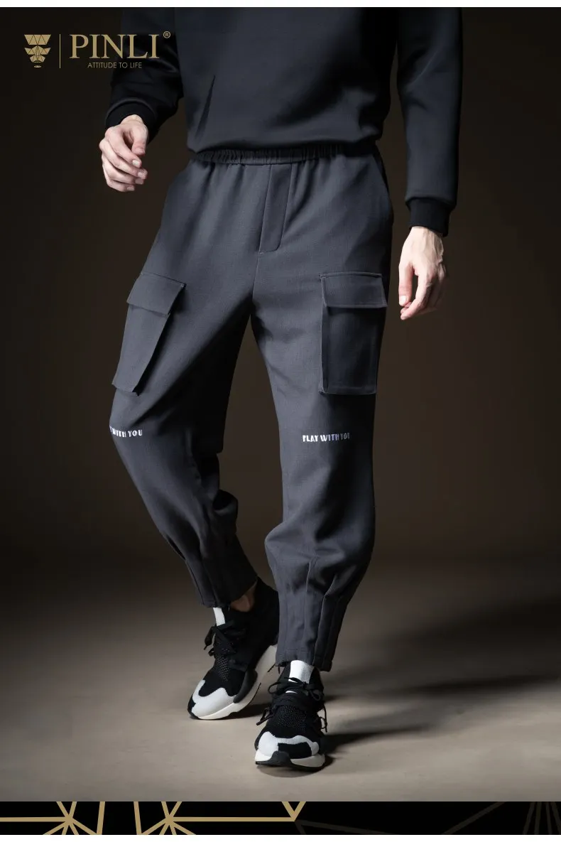 Штаны-карго для бега, спортивные штаны Pinli, осень 2019, новинка, мужские свободные, маленькие, несколько мешков, рабочая одежда, штаны для отдыха, B193217178