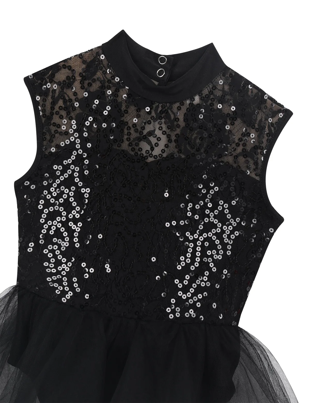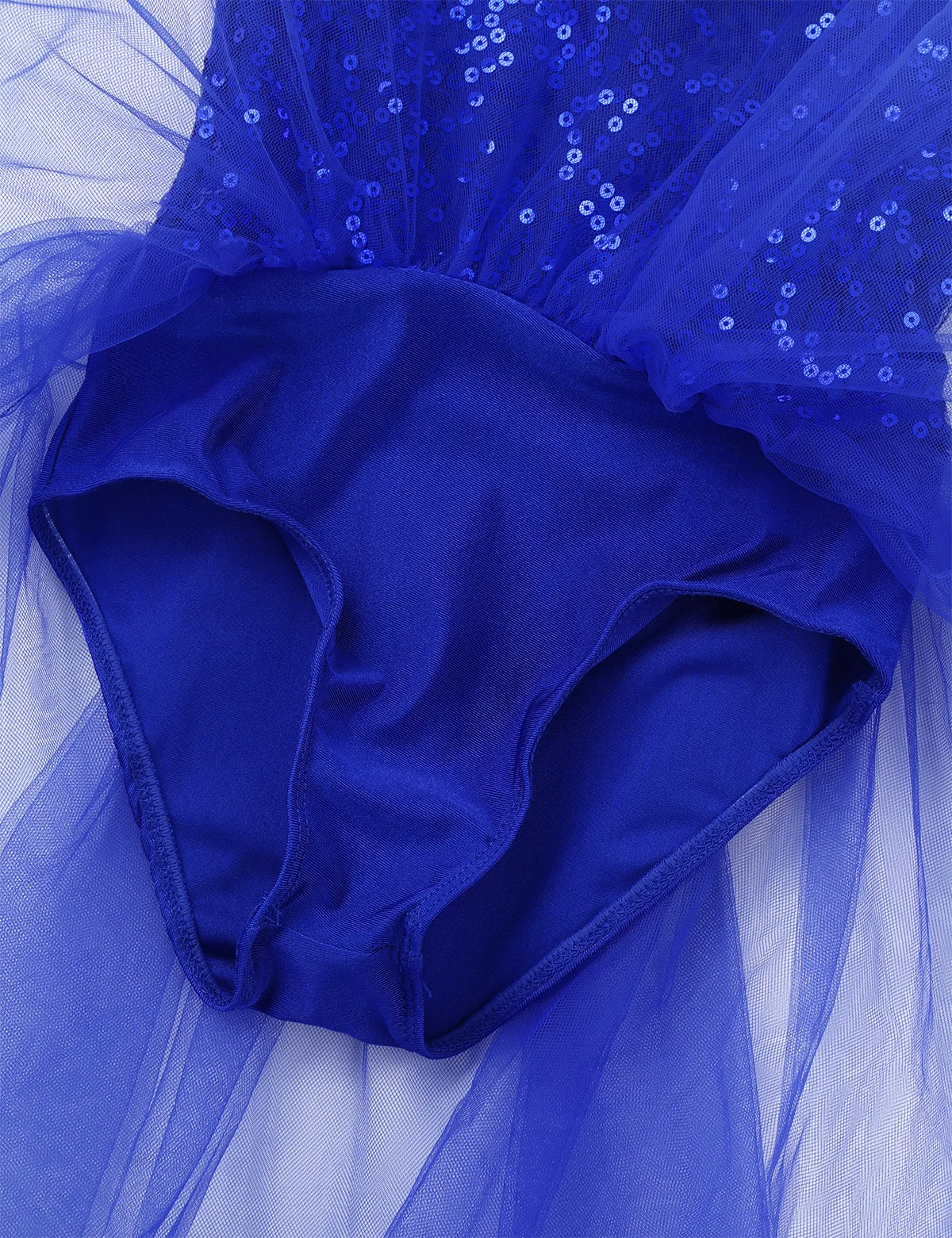 Детское платье FEESHOW для девочек, одежда для фигурок, катания на роликах, балетного танца, трико, платья, одежда, платье с блестками и вырезом на спине