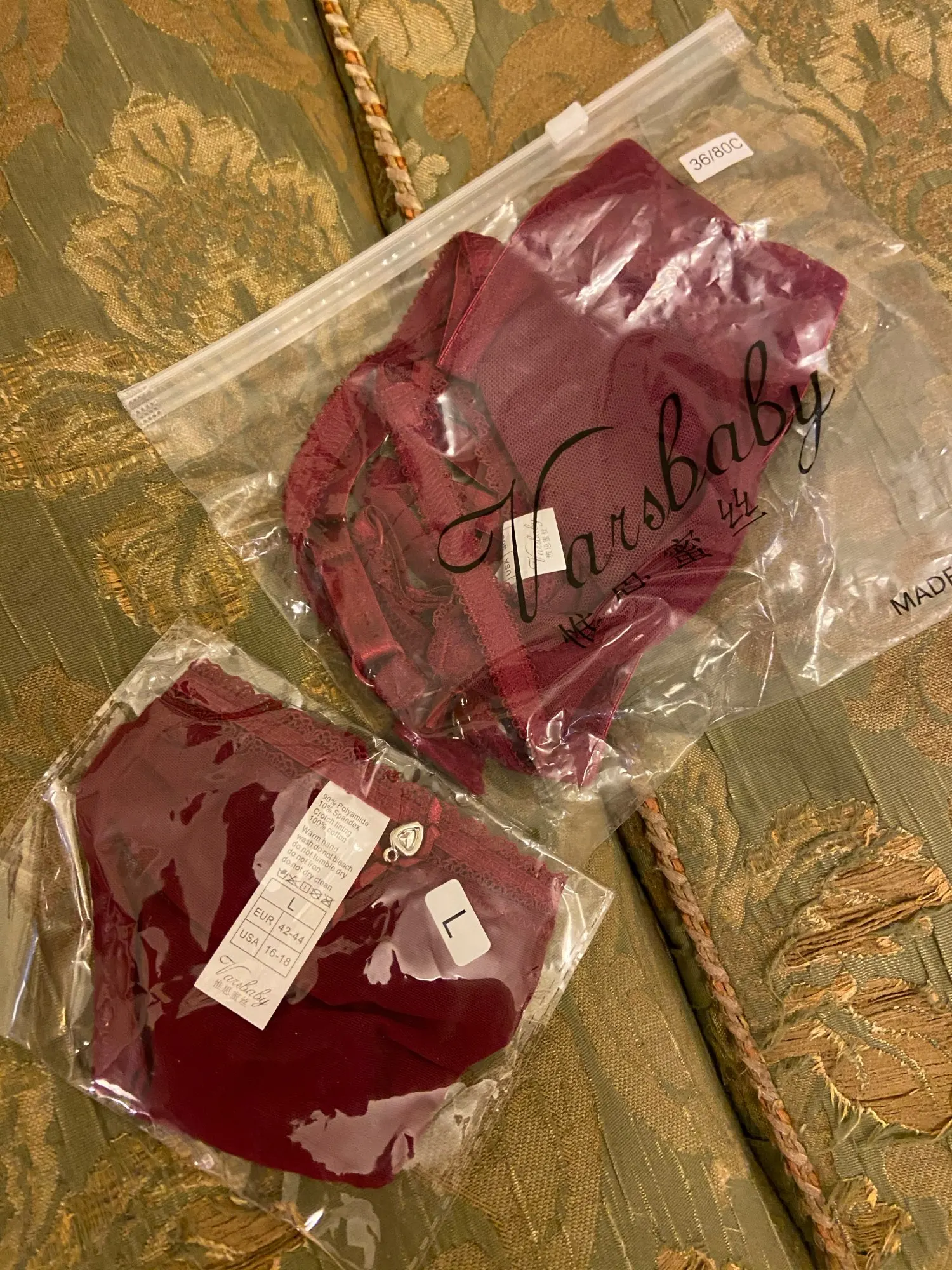 Продавец отправил заказ на следующий день. Я надел трусики размером L. Швы гладкие, все идеально сделано. Под грудью-77 заказанный 80 D. Большое спасибо продавцу, идеальный комплект нижнего белья. Я закажу больше бордового цвета!