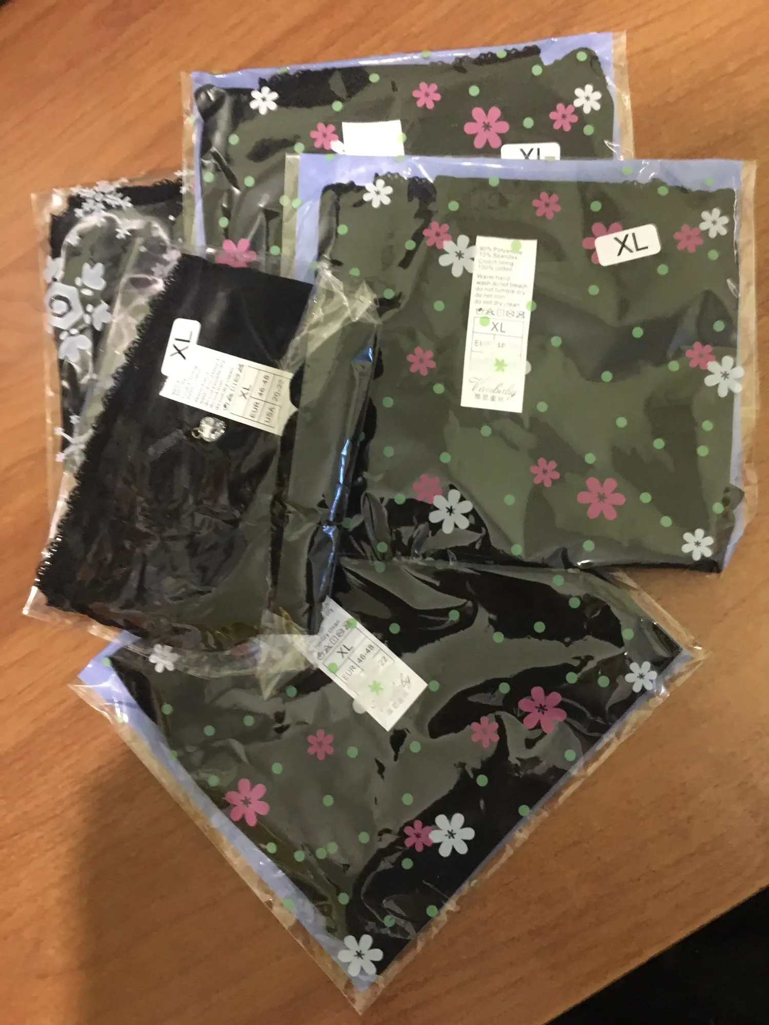 Заказала сразу 3. Отличные комплекты. На попу 110см попросила продавца положить трусики 2XL, он все сделал. Доставка очень быстрая.